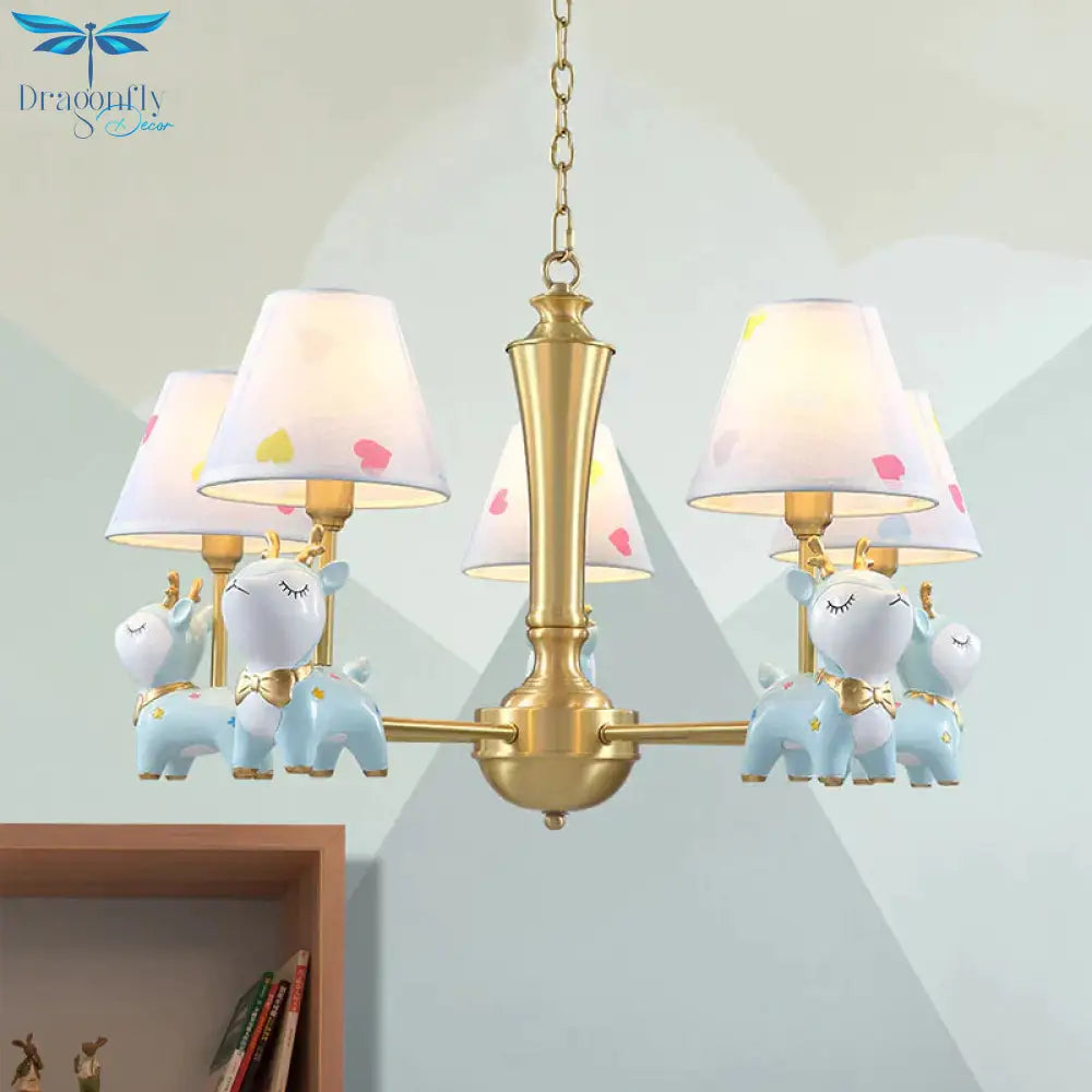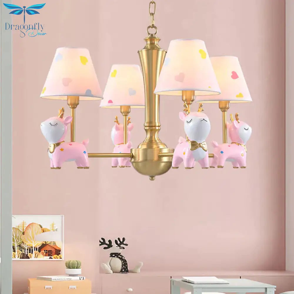 Contemporary Tapered Shade Hanging Light Fixture with Deer Metal Hanging Chandelier for Living Room