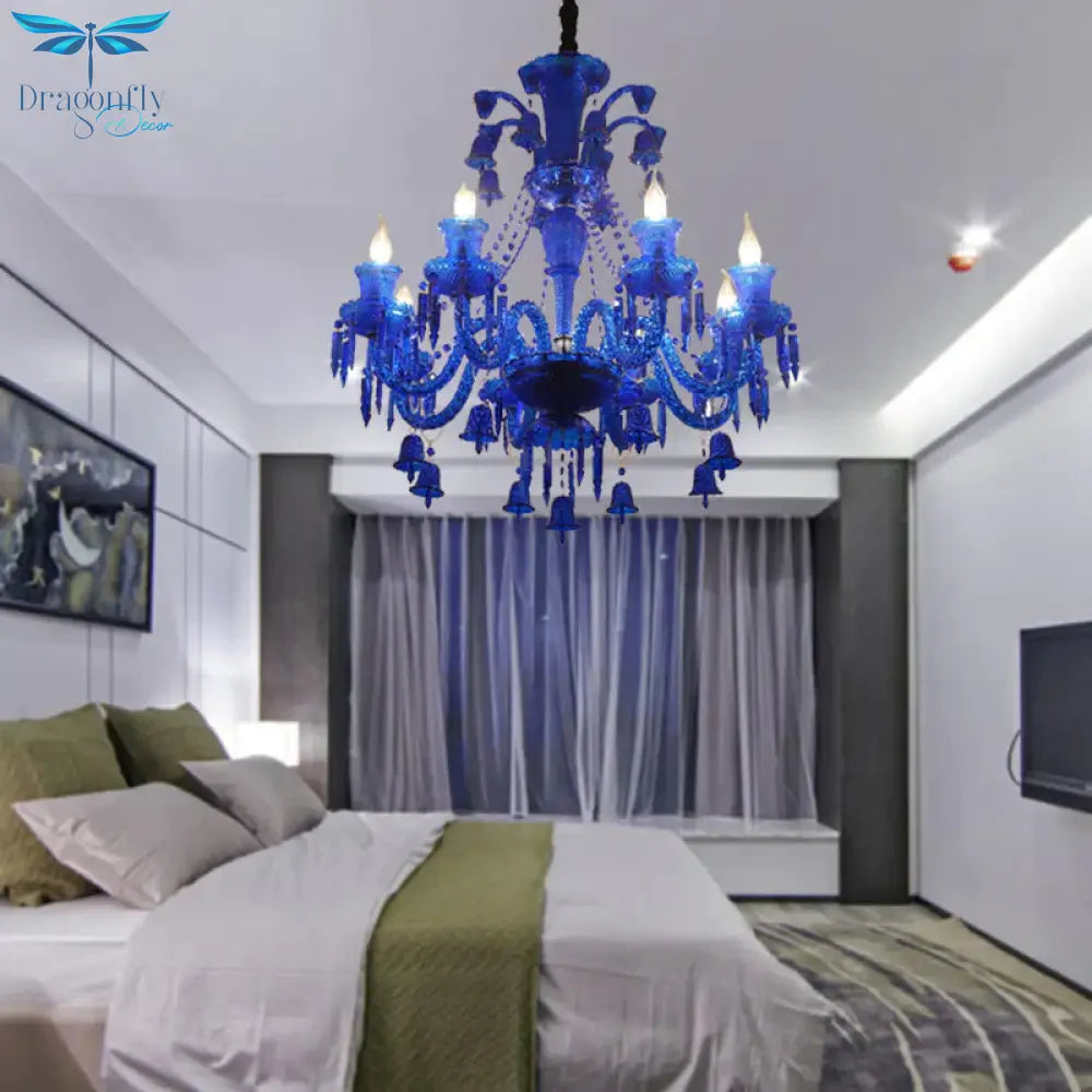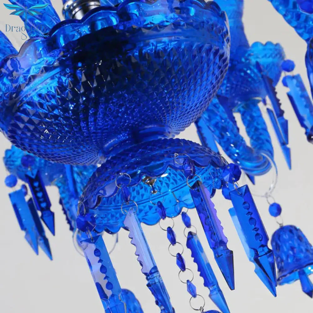 8 Lights Crystal Hanging Lamp Traditional Red/Blue/Purple Candelabra Living Room Chandelier Light