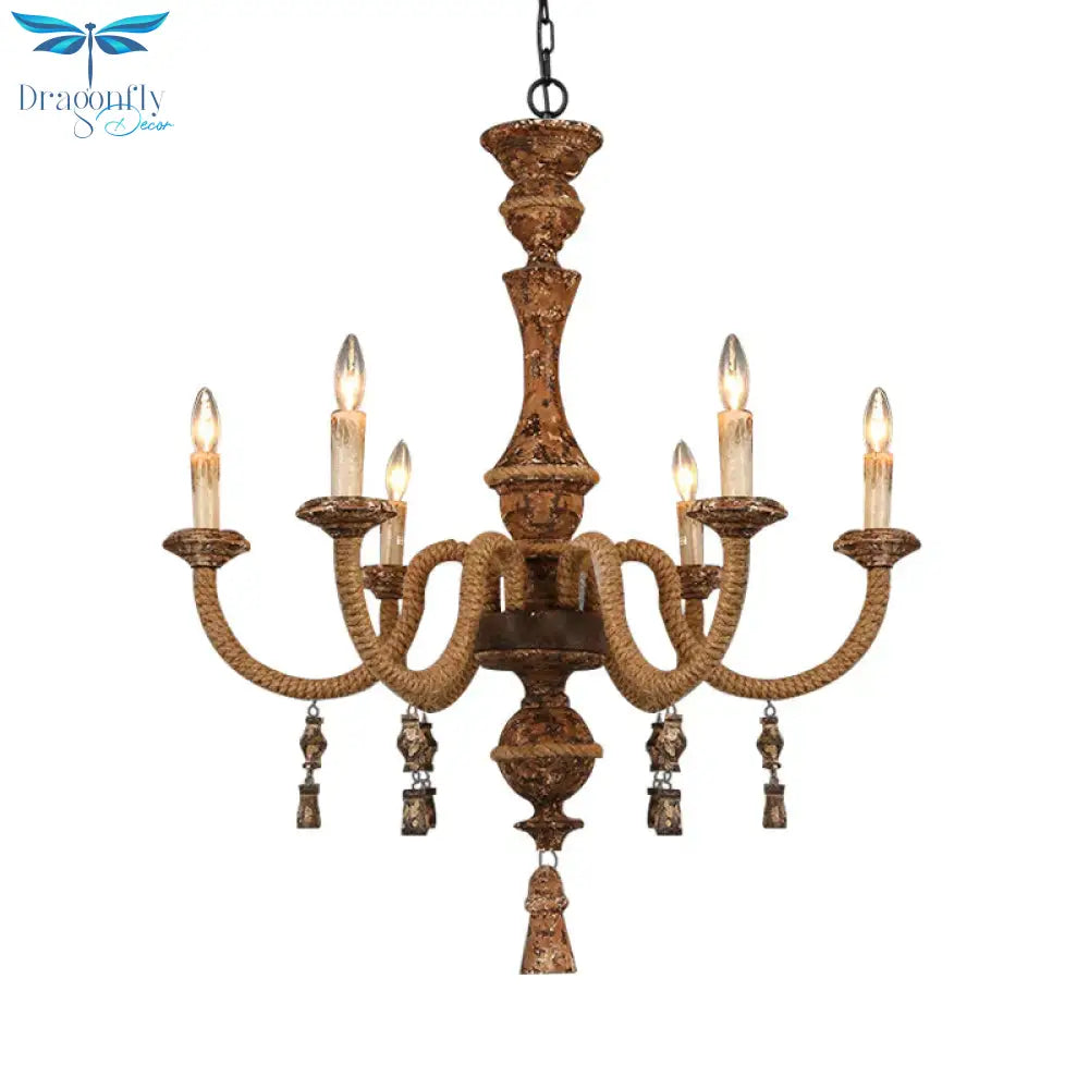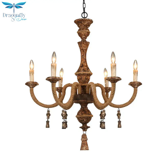 Candelabra Metal Ceiling Light Rustic 6-Bulb Living Room Pendant Chandelier in Brown