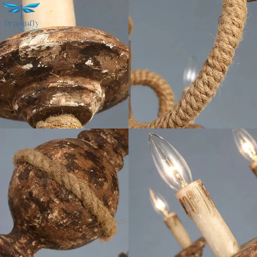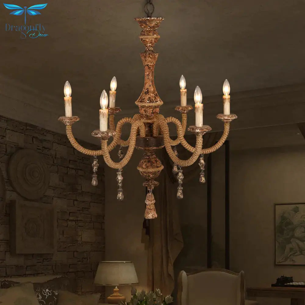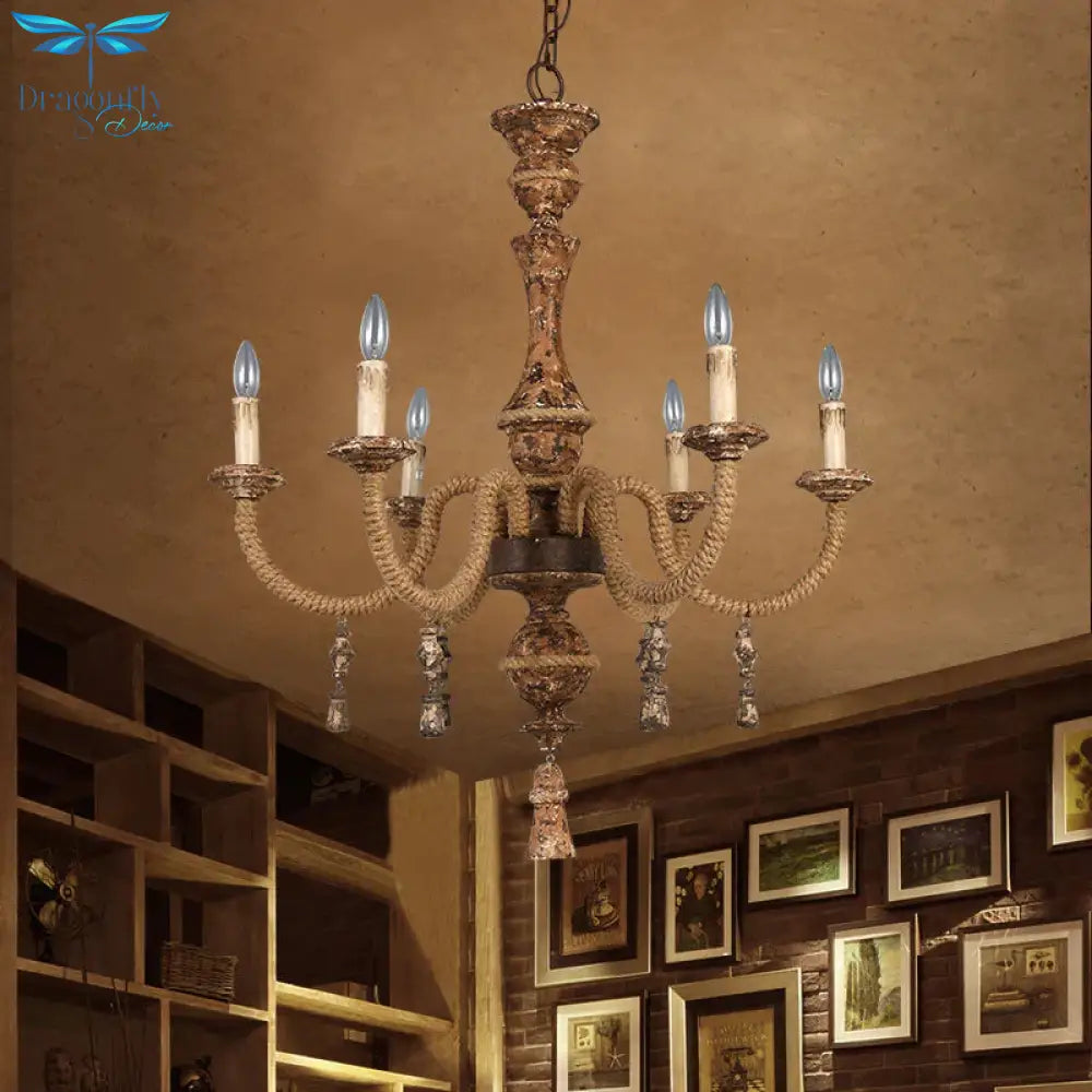 Candelabra Metal Ceiling Light Rustic 6 - Bulb Living Room Pendant Chandelier In Brown