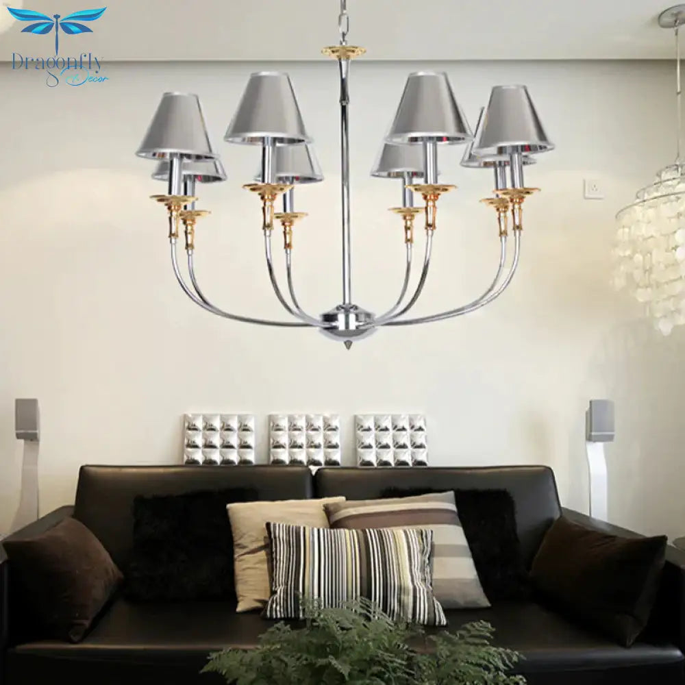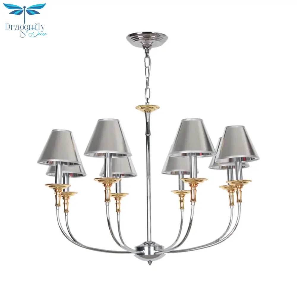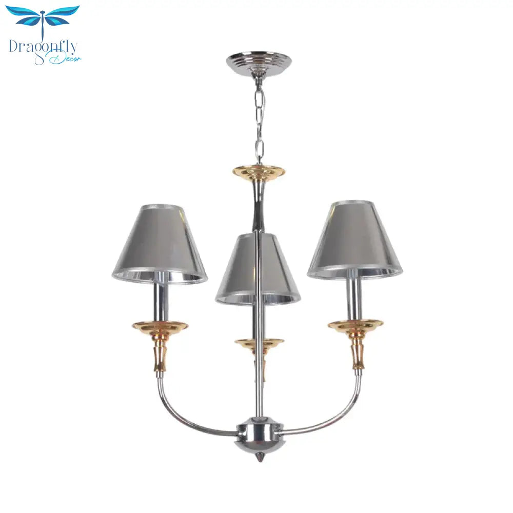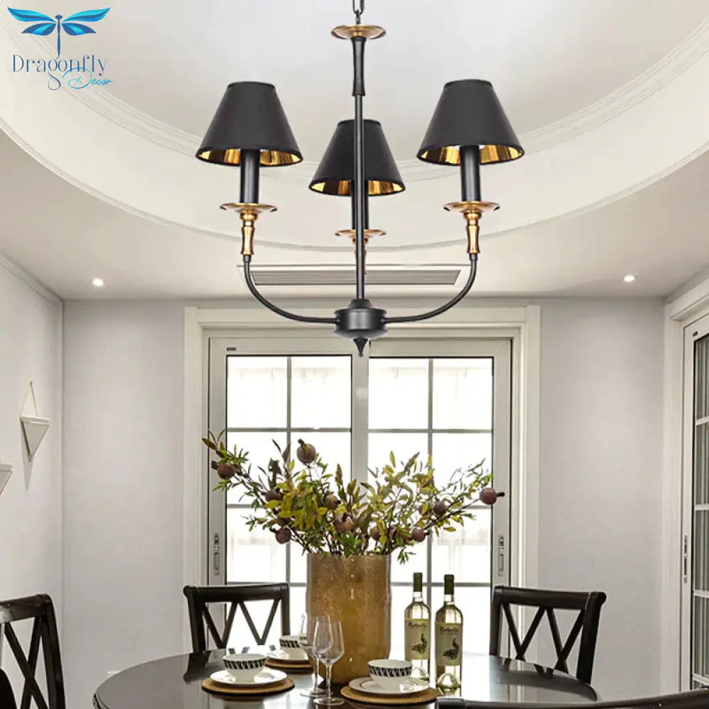 Traditional Cone Shape Chandelier 3/4/6 - Head Fabric Hanging Pendant In Black/Chrome With Swooping