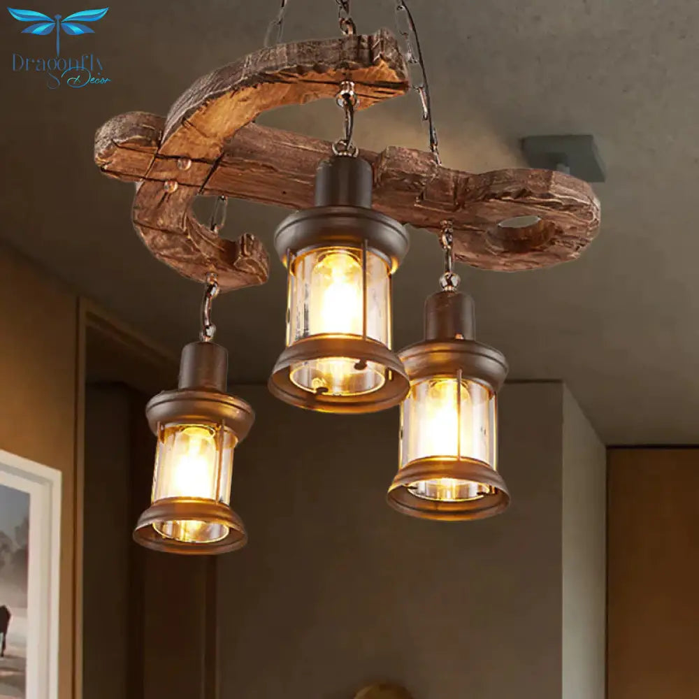 3 Lights Ceiling Light Fixture Coastal Kerosene Clear Glass Pendant Ch