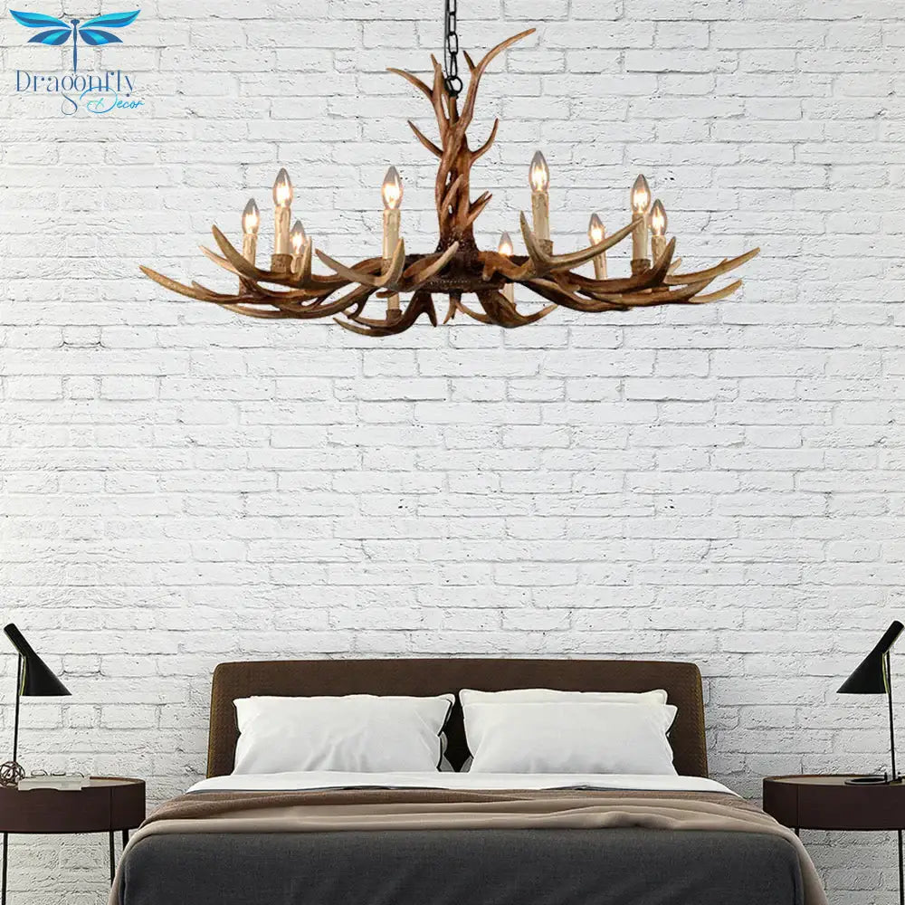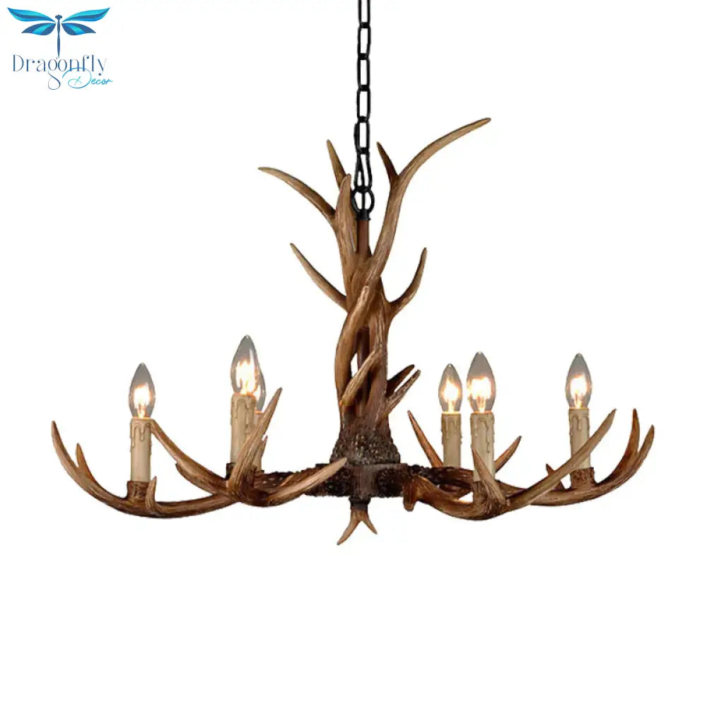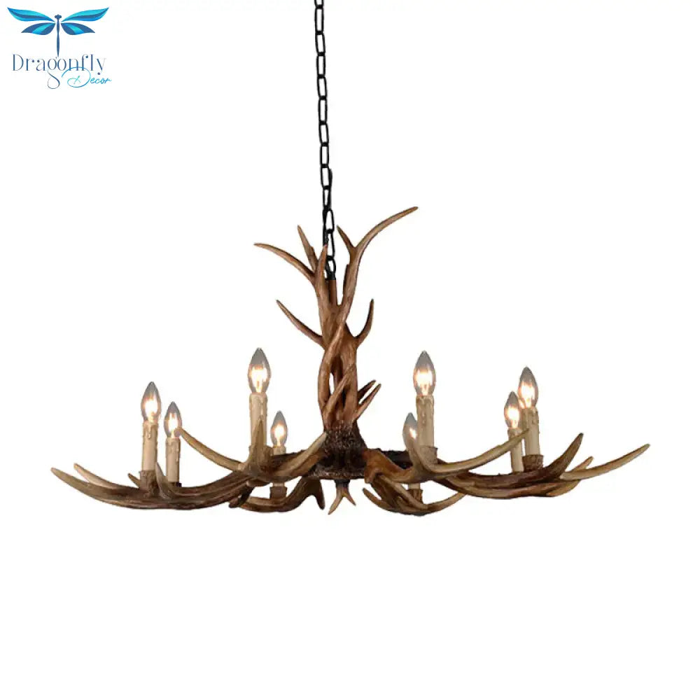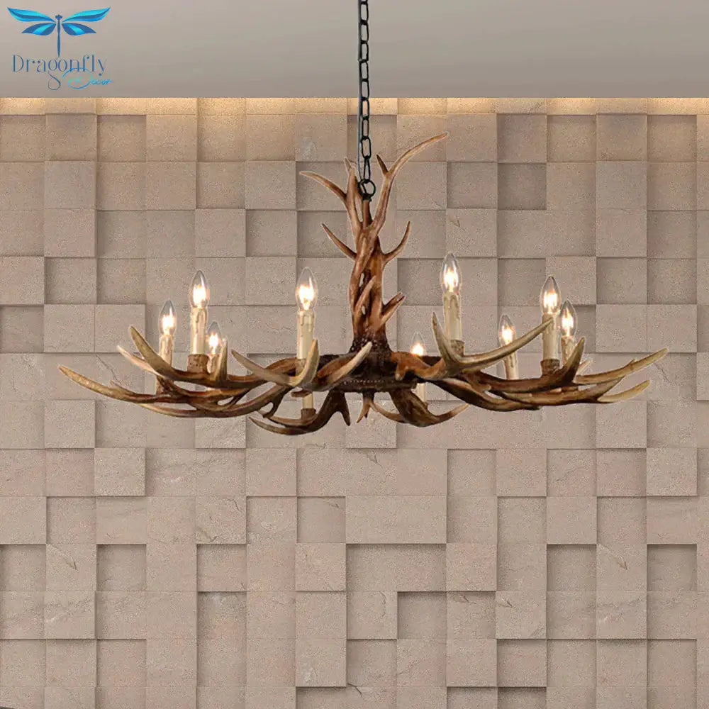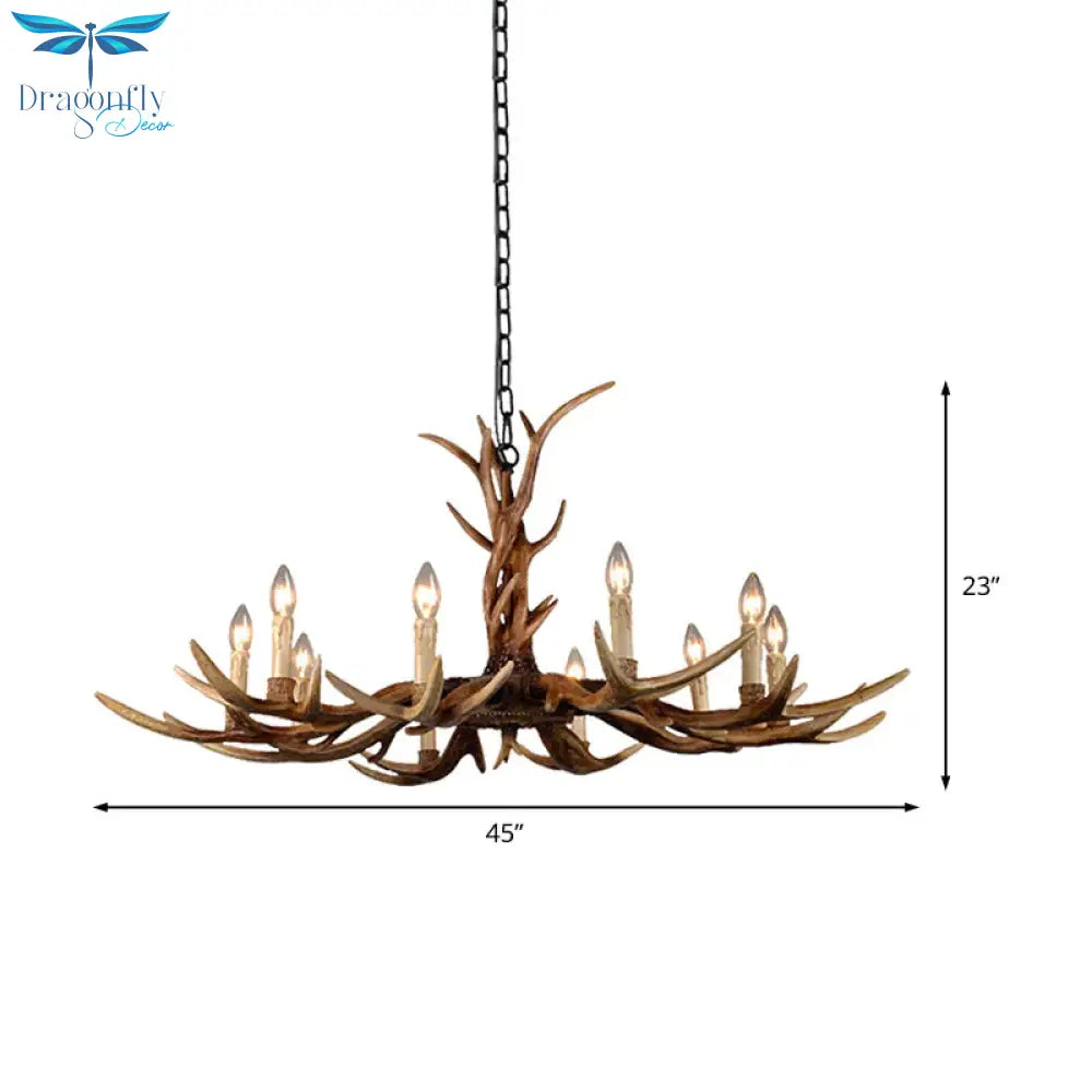 Countryside Faux Antler Hanging Pendant 6/8/10 Lights Resin Ceiling Chandelier in Brown for Living Room