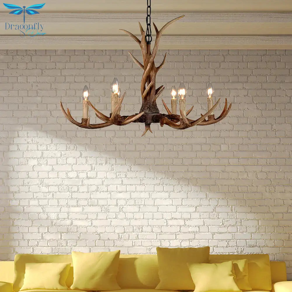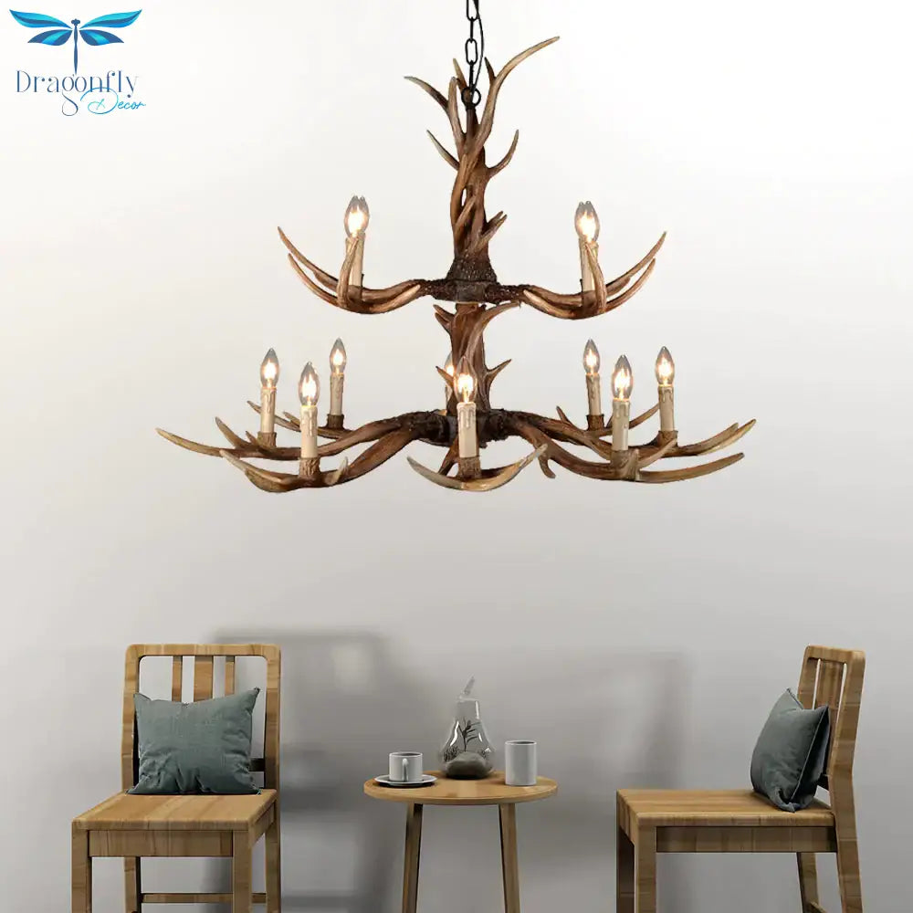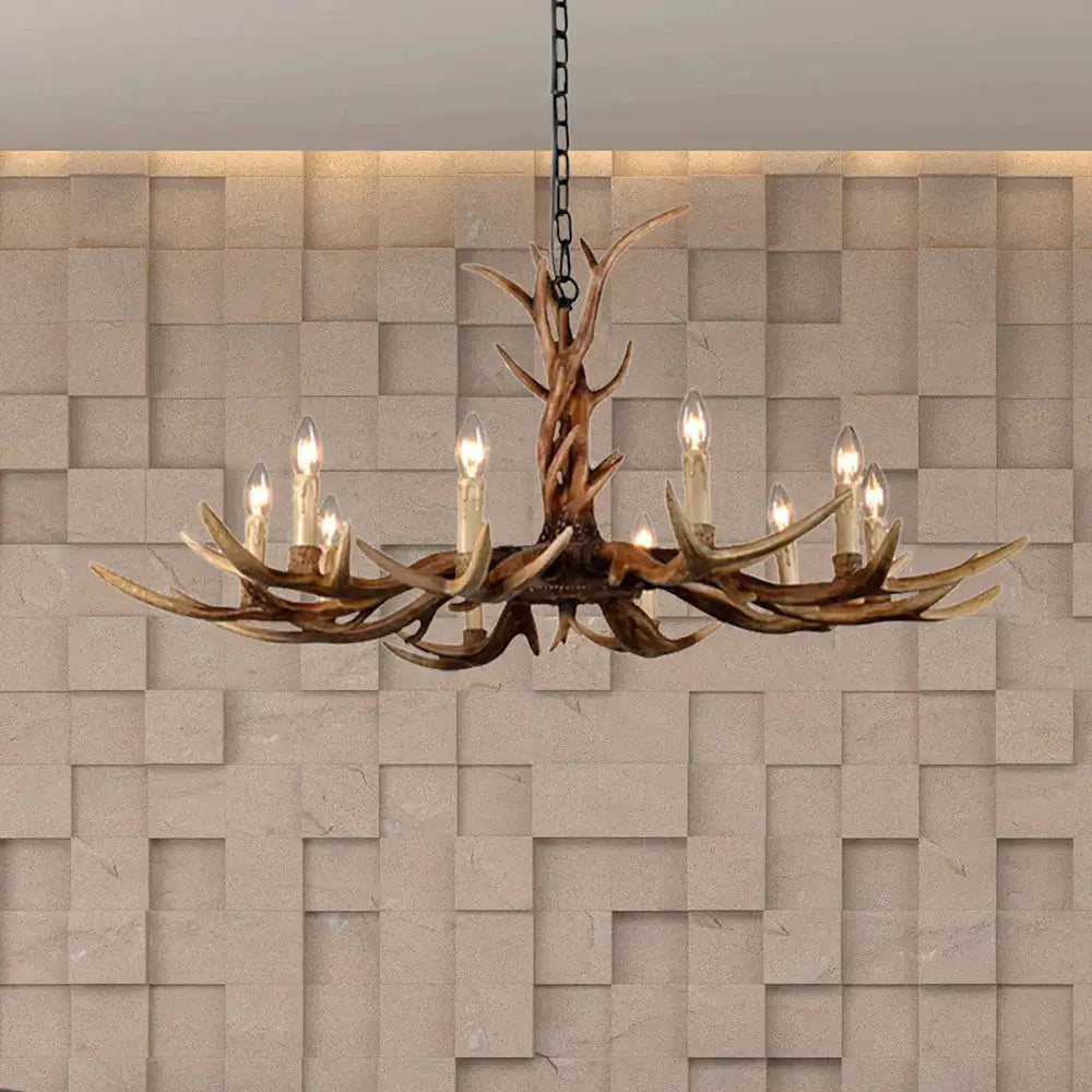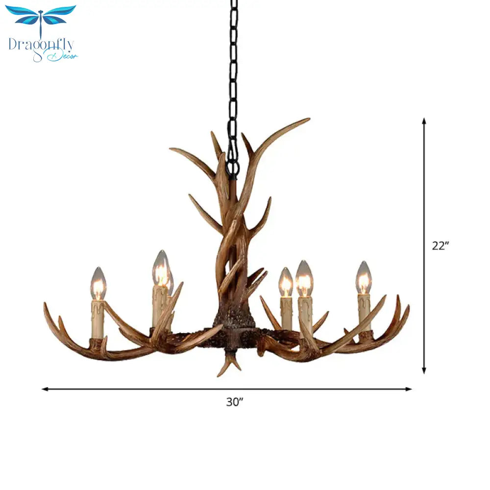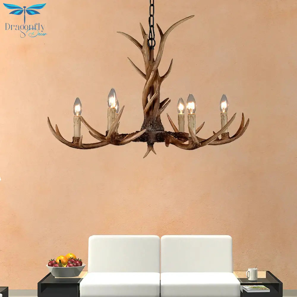 Countryside Faux Antler Hanging Pendant 6/8/10 Lights Resin Ceiling Chandelier in Brown for Living Room