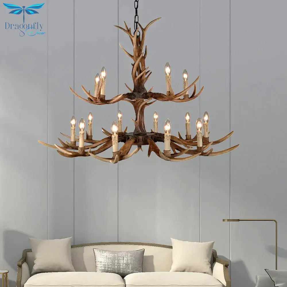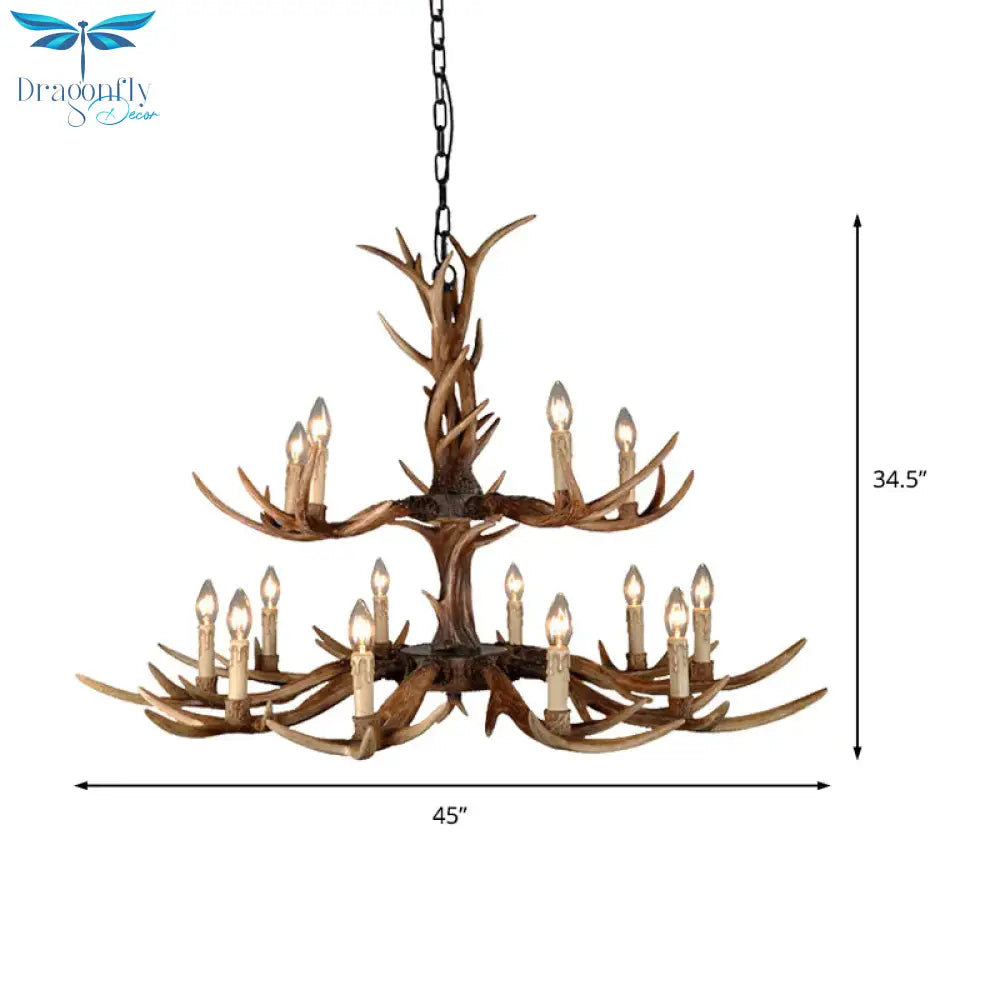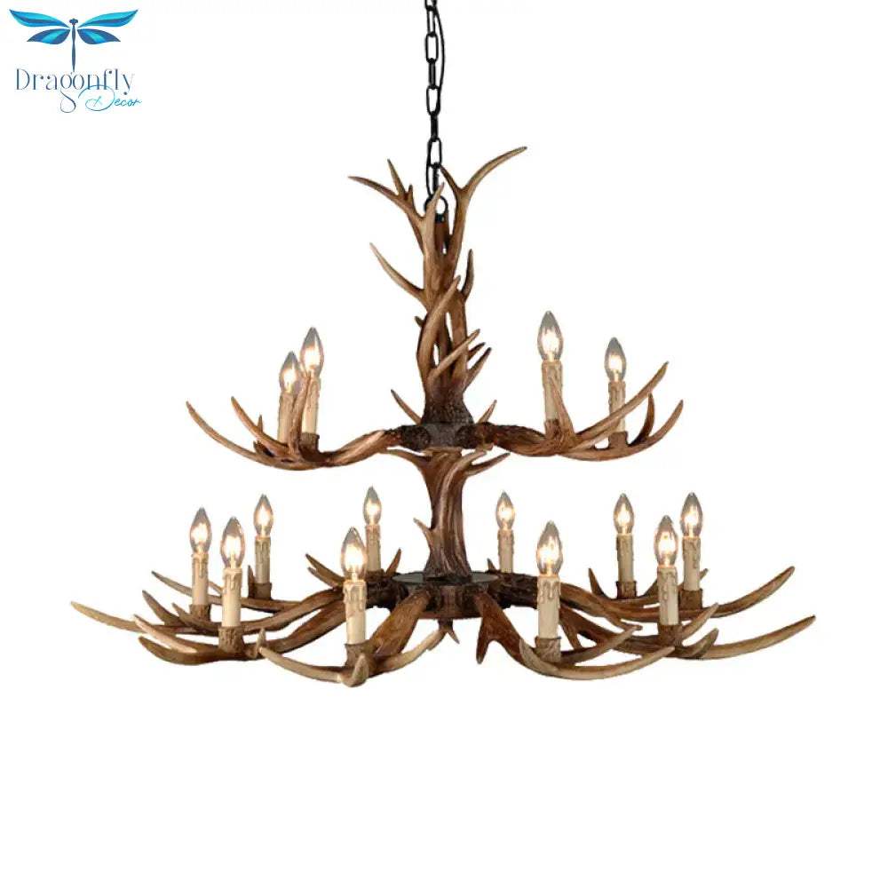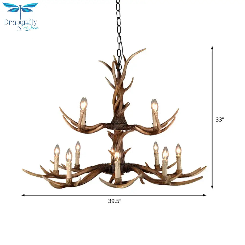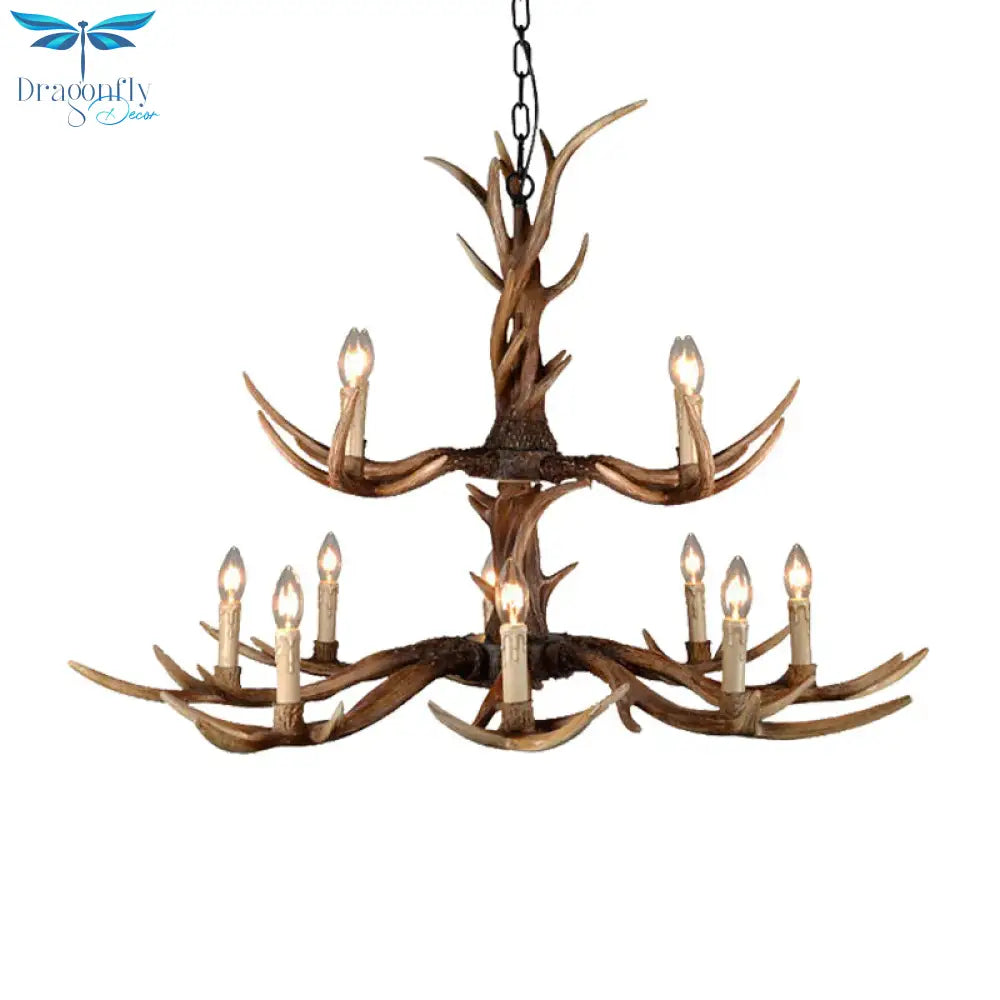 Countryside Faux Antler Hanging Pendant 6/8/10 Lights Resin Ceiling Chandelier in Brown for Living Room
