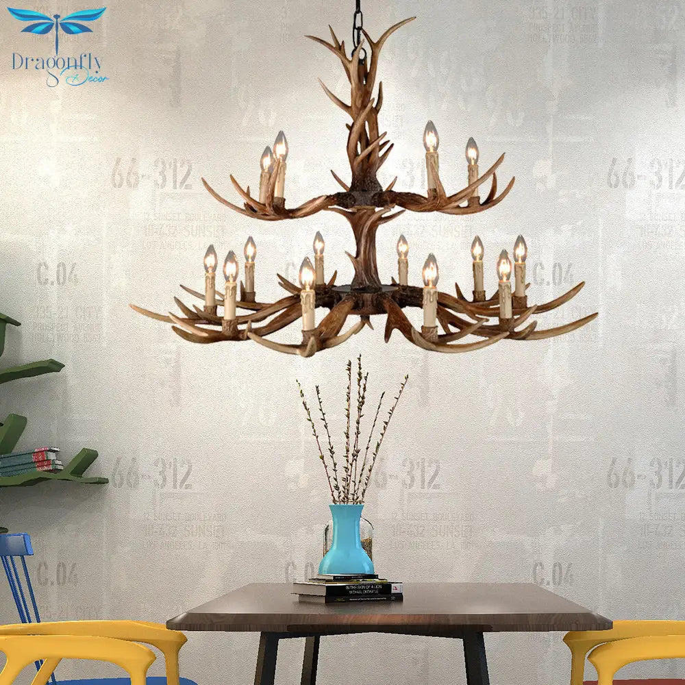 Countryside Faux Antler Hanging Pendant 6/8/10 Lights Resin Ceiling Ch