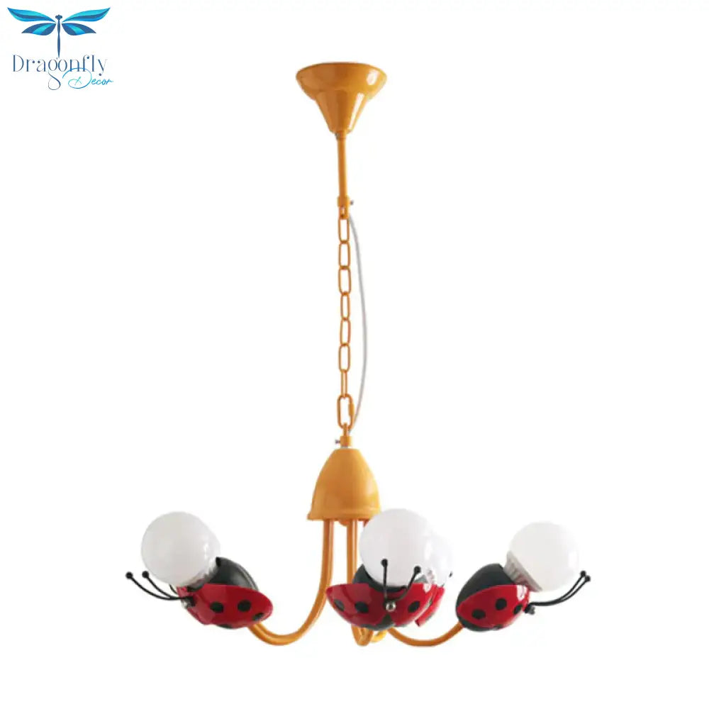 Lady Beetle Bedroom Hanging Chandelier Glass Cartoon Hanging Pendant L