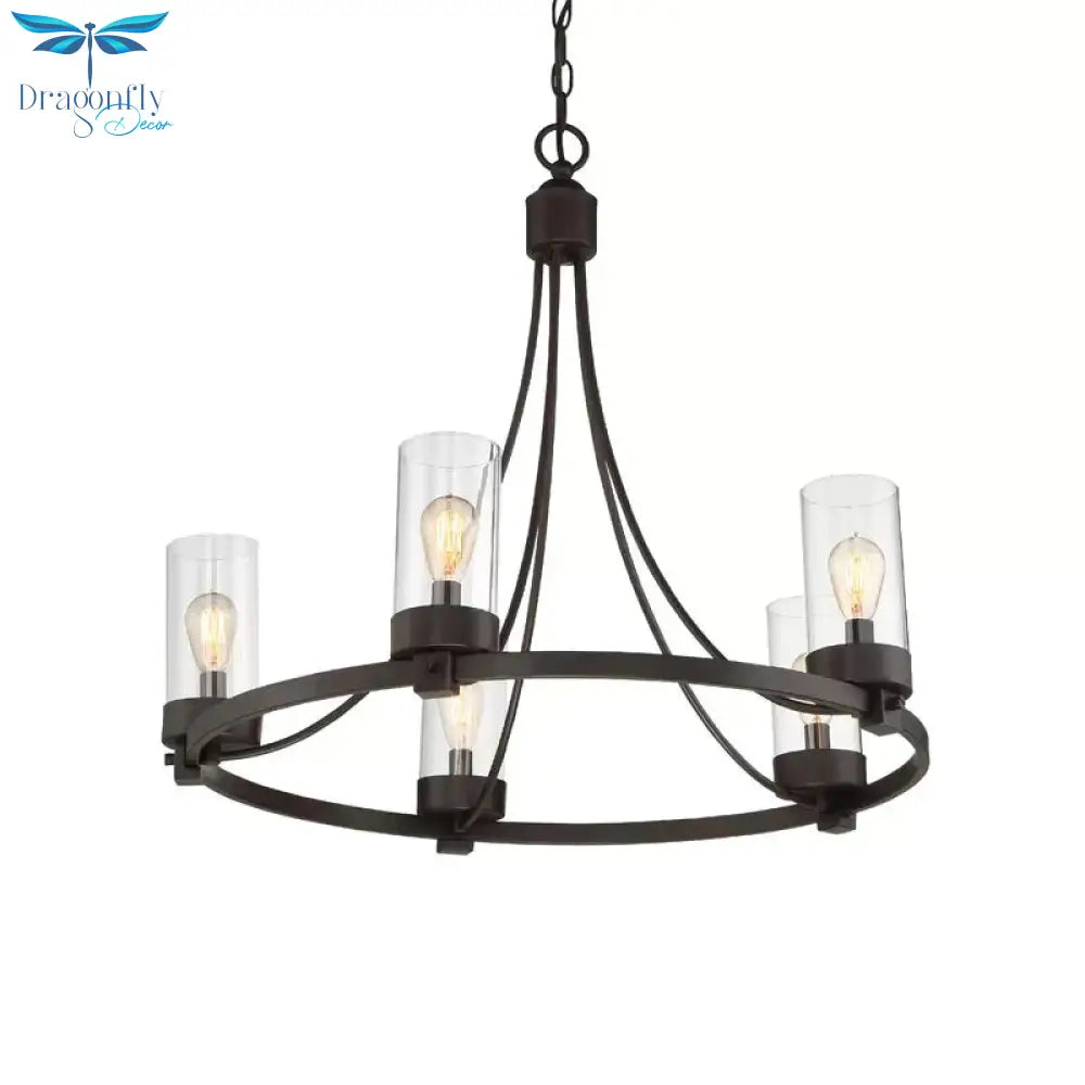 Black 5 Lights Pendant Chandelier Vintage Clear Glass Cylinder Hanging