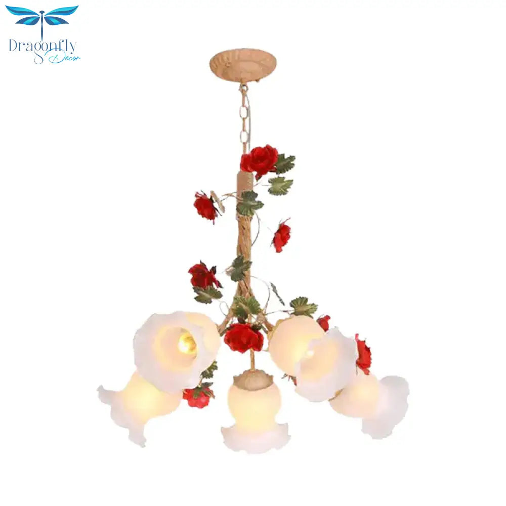 Cream Glass Coffee Drop Lamp Blossom 3/5 Bulbs Pastoral Pendant Chande