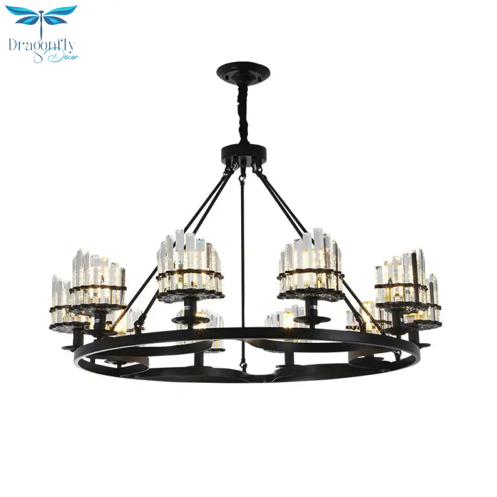 Vintage Circular Industrial Design Crystal Chandelier for Living Room Dining Room