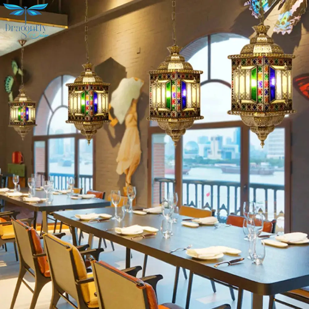 3 - Light Ceiling Chandelier Arabian Lantern Metal Suspended Lighting Fixture In Brass For