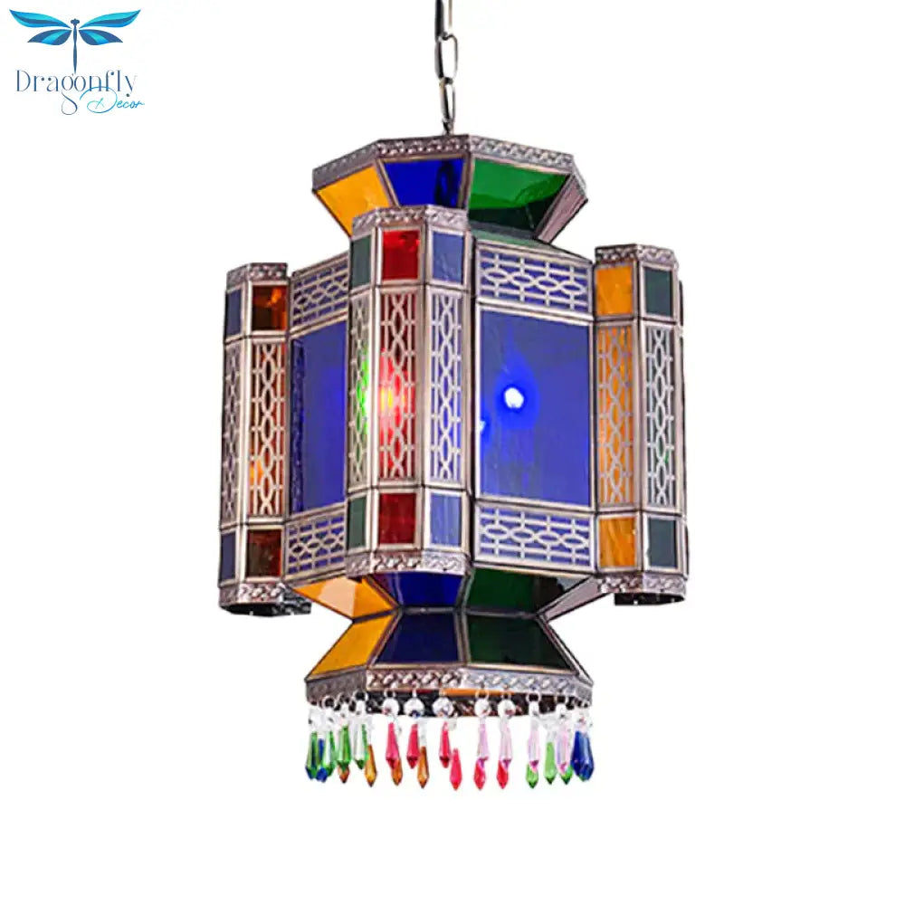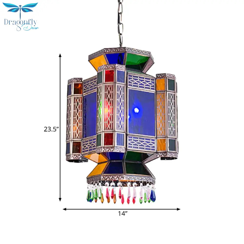Castle Blue Glass Hanging Chandelier Arab 3 Lights Restaurant Ceiling Pendant Lamp