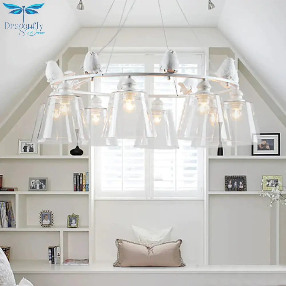 White 3/8 Lights Chandelier Light Fixture Classic Clear Glass Tapered Pendant Lamp For Living Room