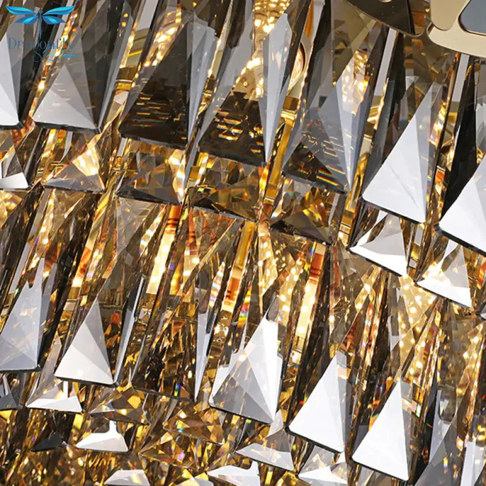 Black Round Chandelier Pendant Light Modernism 9 Lights Rectangle-Cut Crystal Suspension Light