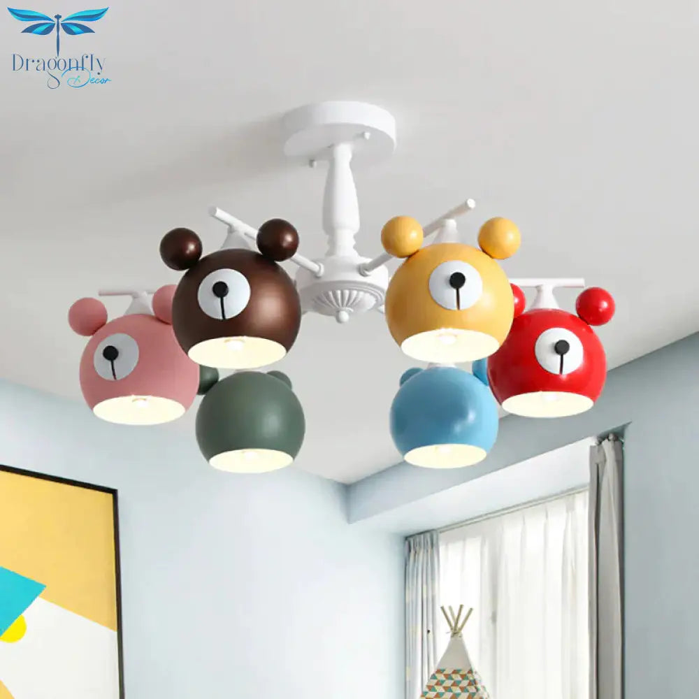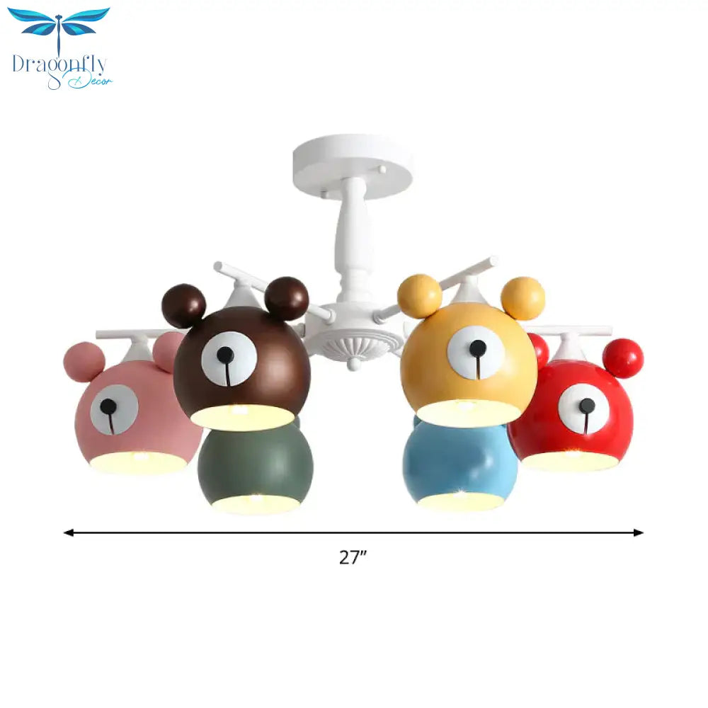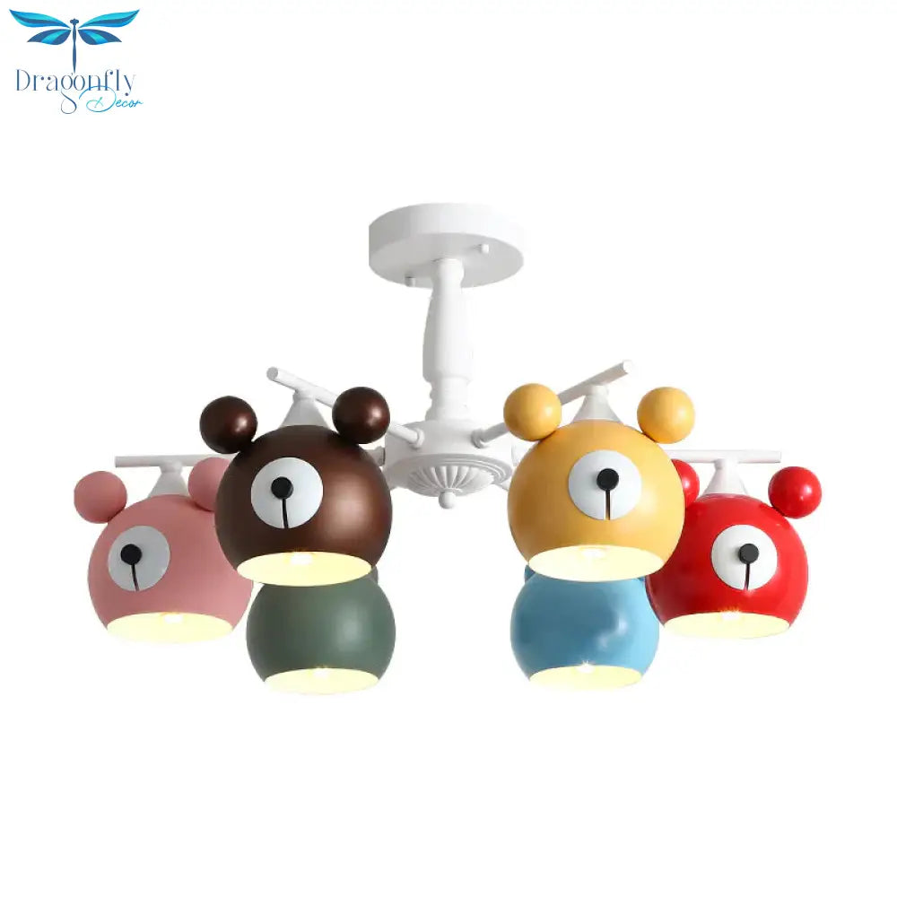 Kid Bedroom Animal Pendant Lighting Metal Cartoon Multi Color Hanging Ornaments 6 / White