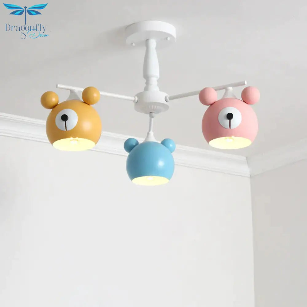 Kid Bedroom Animal Pendant Lighting Metal Cartoon Multi Color Hanging Ornaments 3 / White