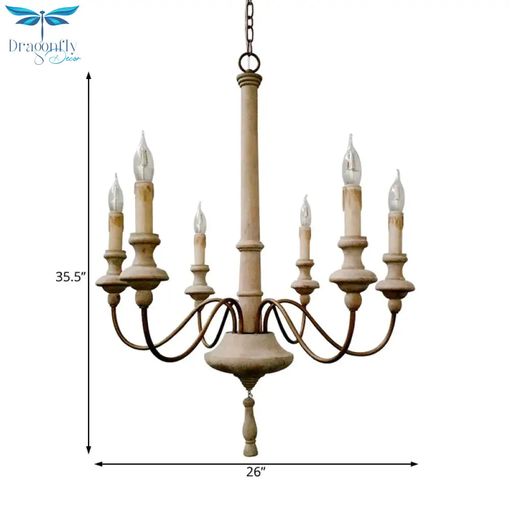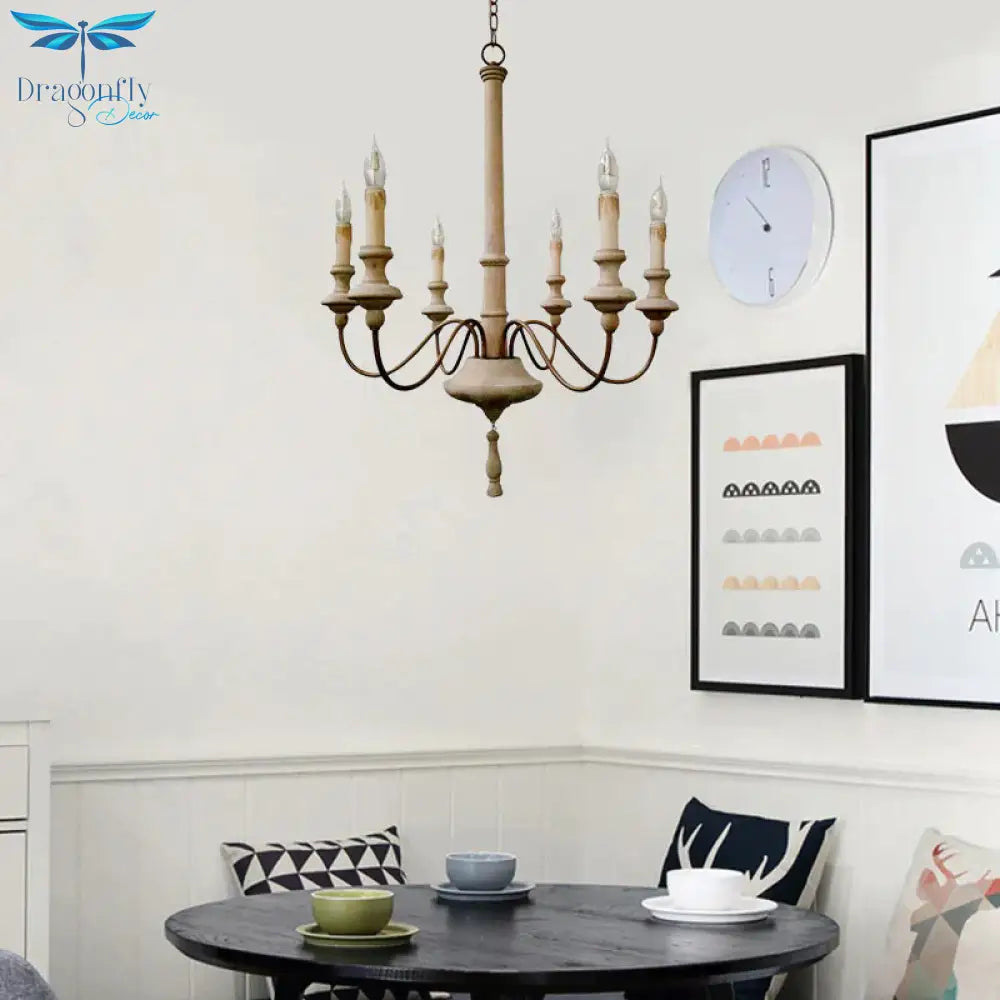 Sputnik Chandelier Lighting Retro Wood Gray-White 6 Bulbs Hanging Ceiling Light with Curved Arm