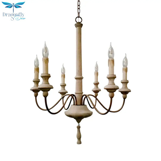 Sputnik Chandelier Lighting Retro Wood Gray - White 6 Bulbs Hanging Ceiling Light With Curved Arm