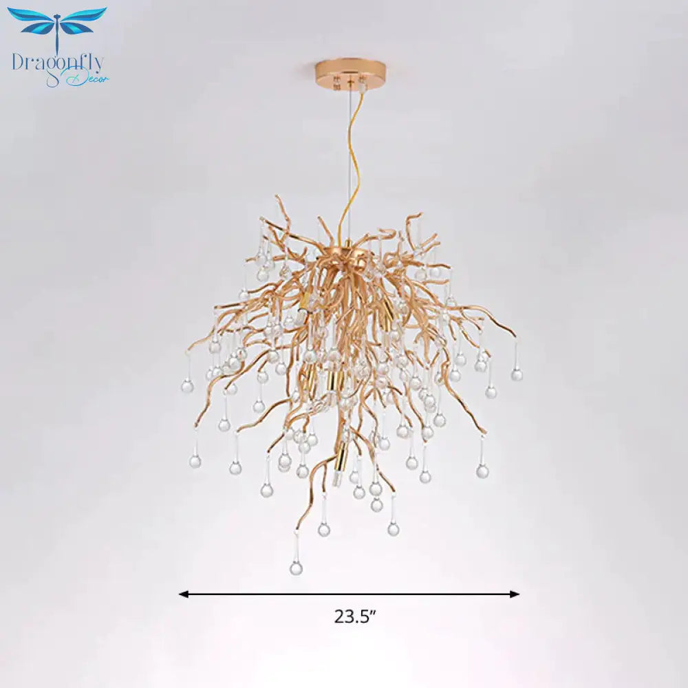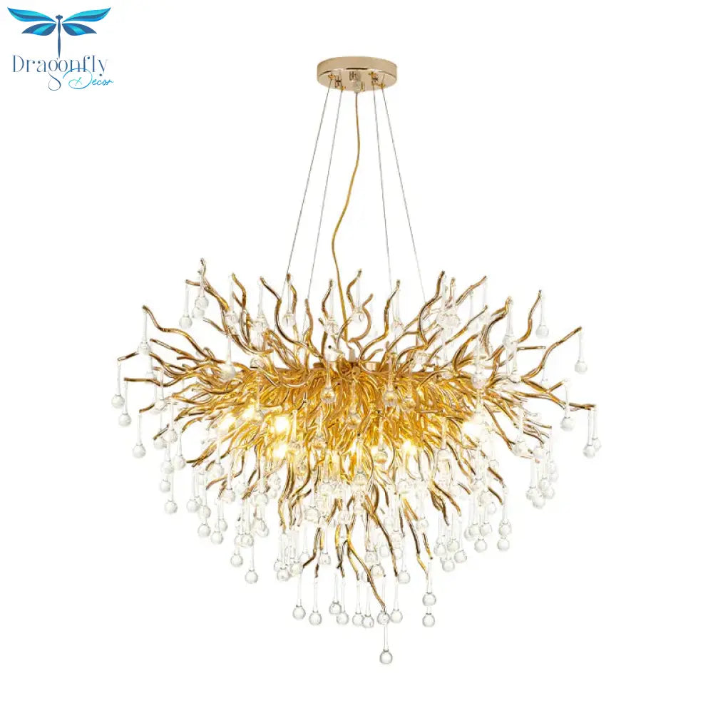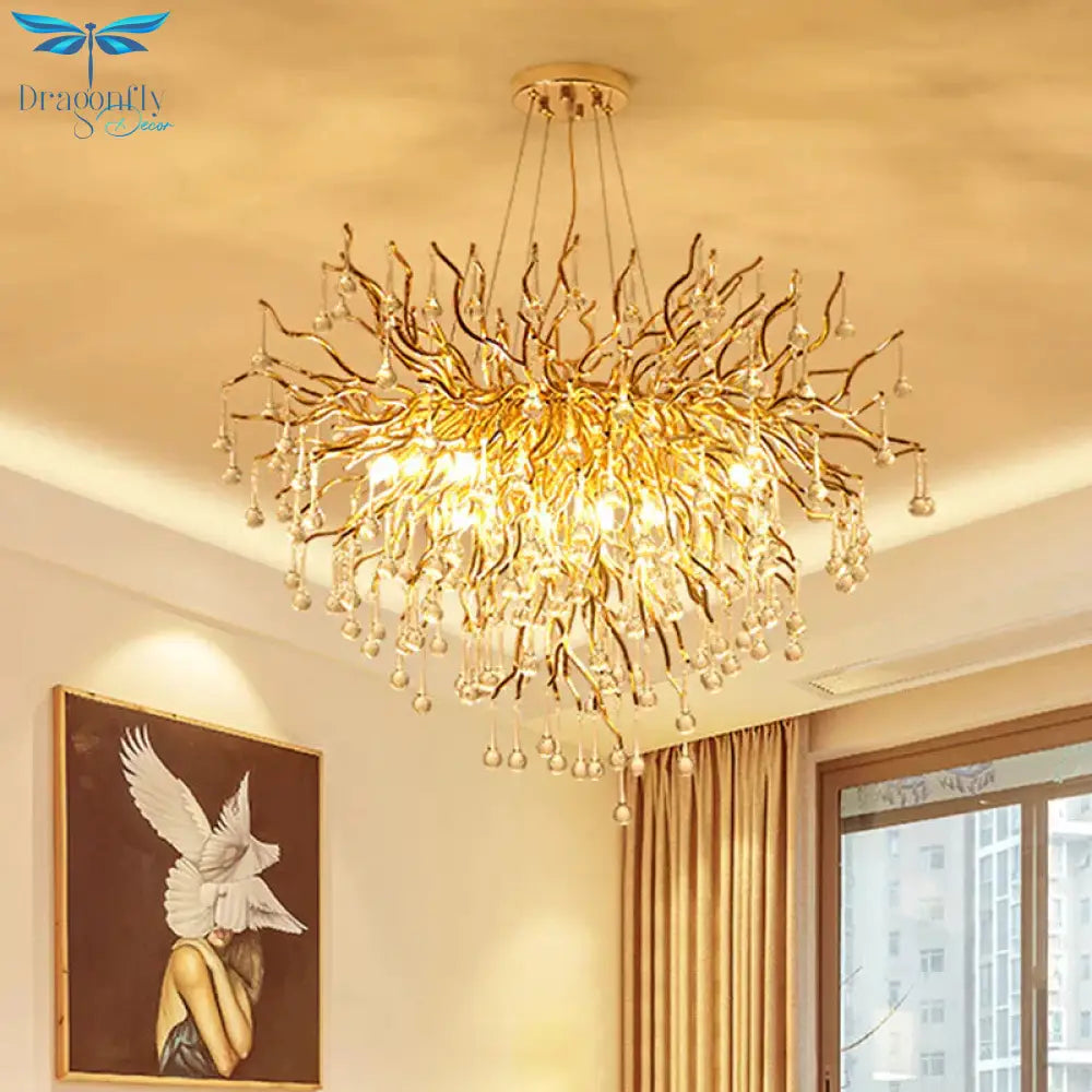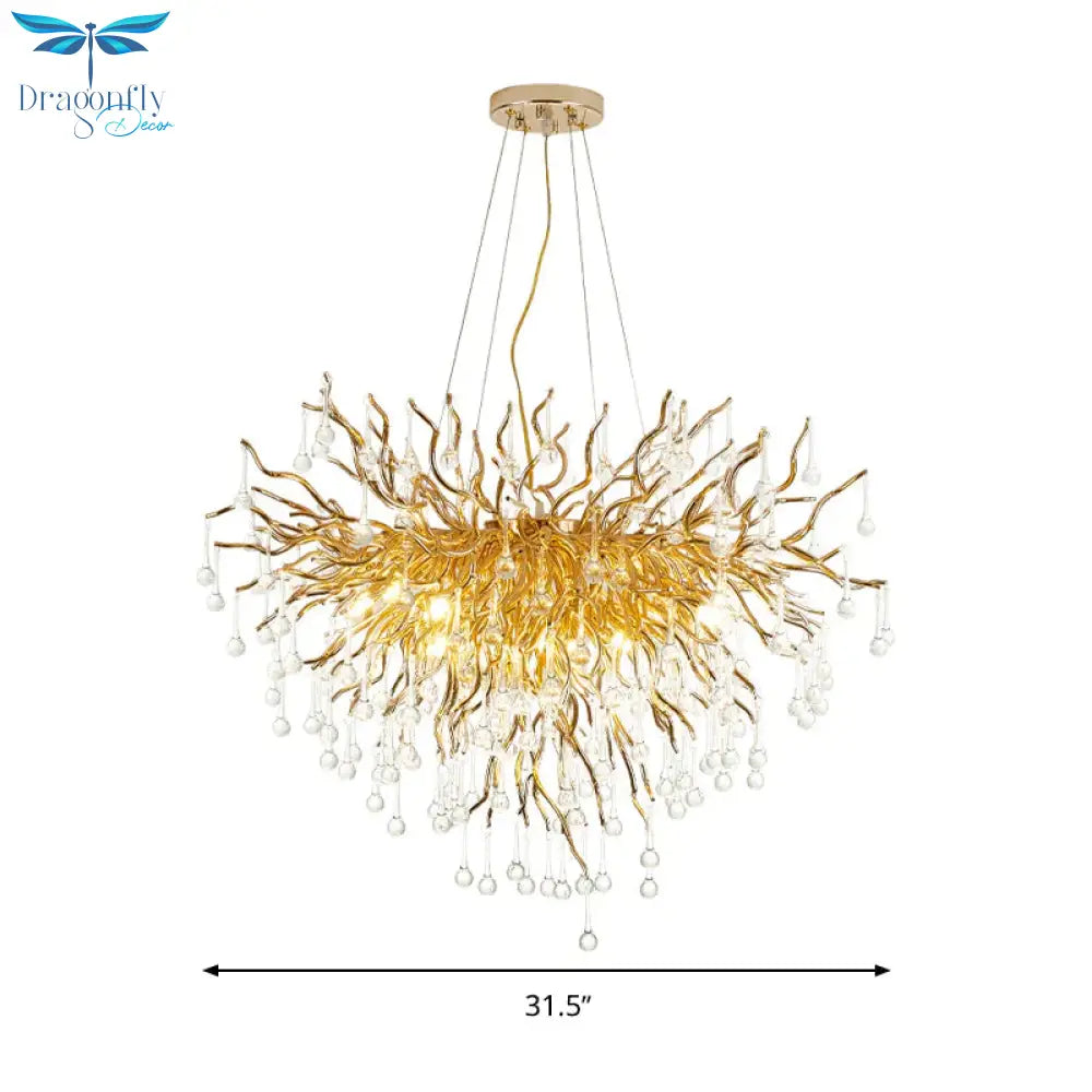 23.5"/31.5" W Clear Crystal Raindrop Hanging Chandelier Rustic 8/10 Lights Gold Ceiling Lamp for Living Room