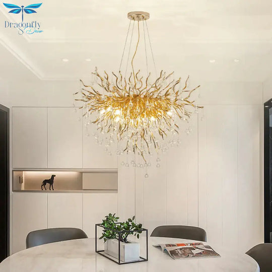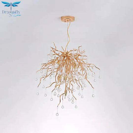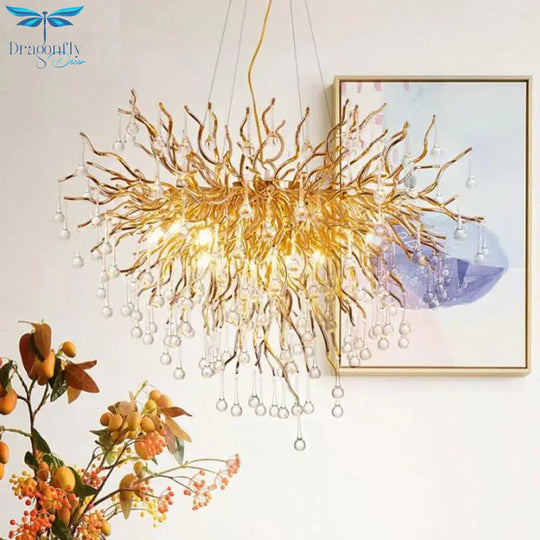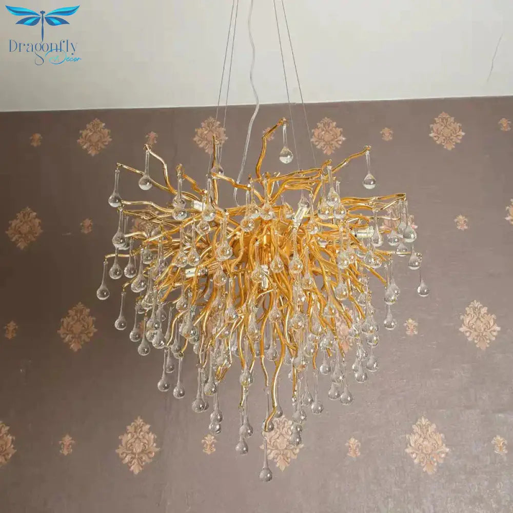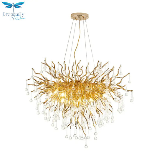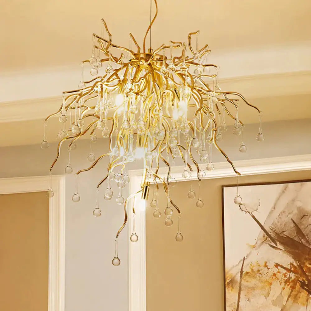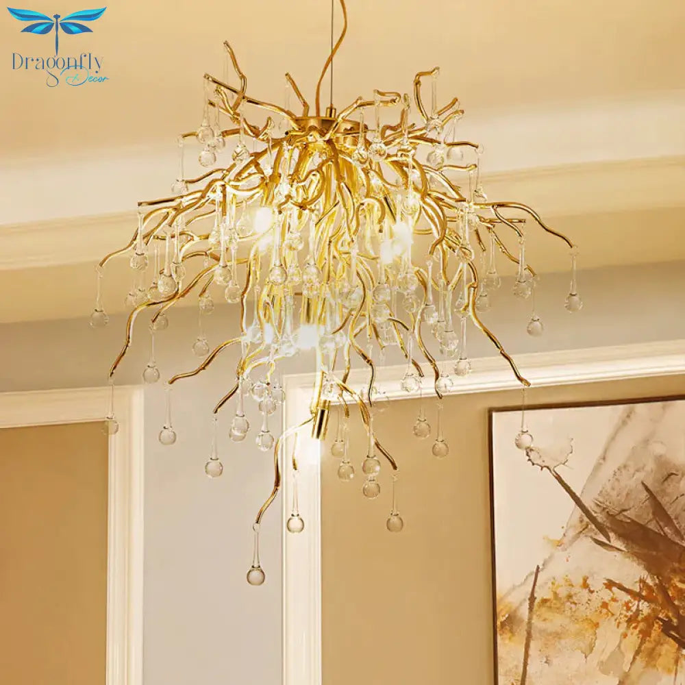 23.5"/31.5" W Clear Crystal Raindrop Hanging Chandelier Rustic 8/10 Lights Gold Ceiling Lamp for Living Room