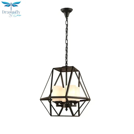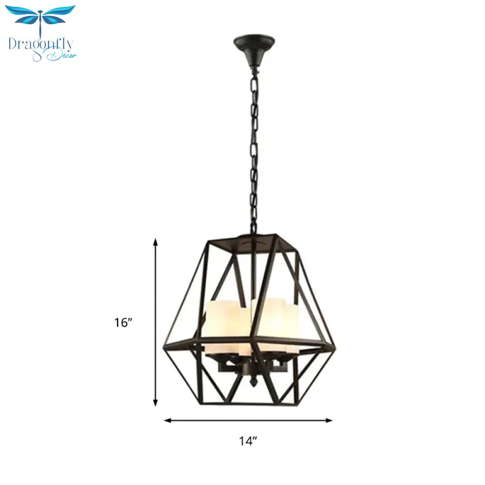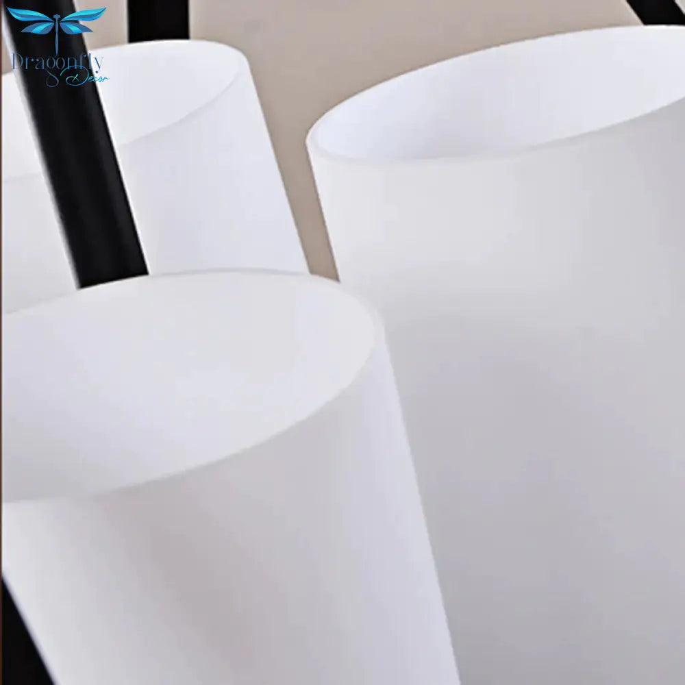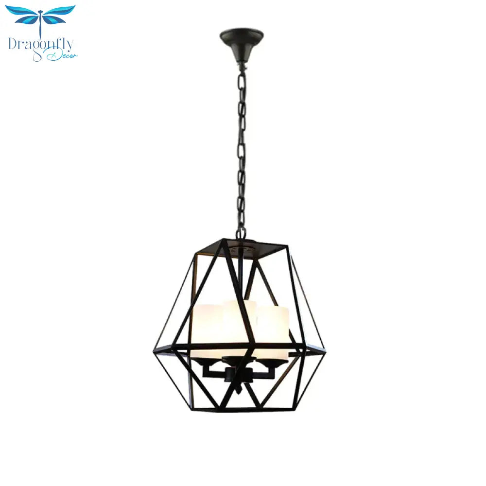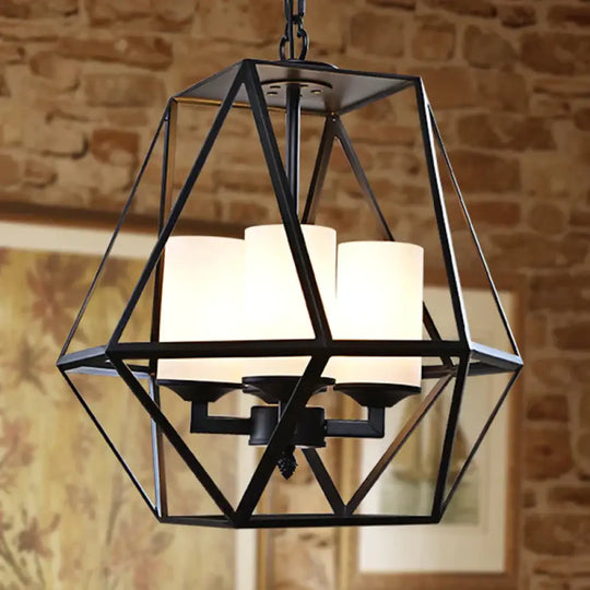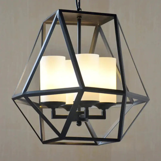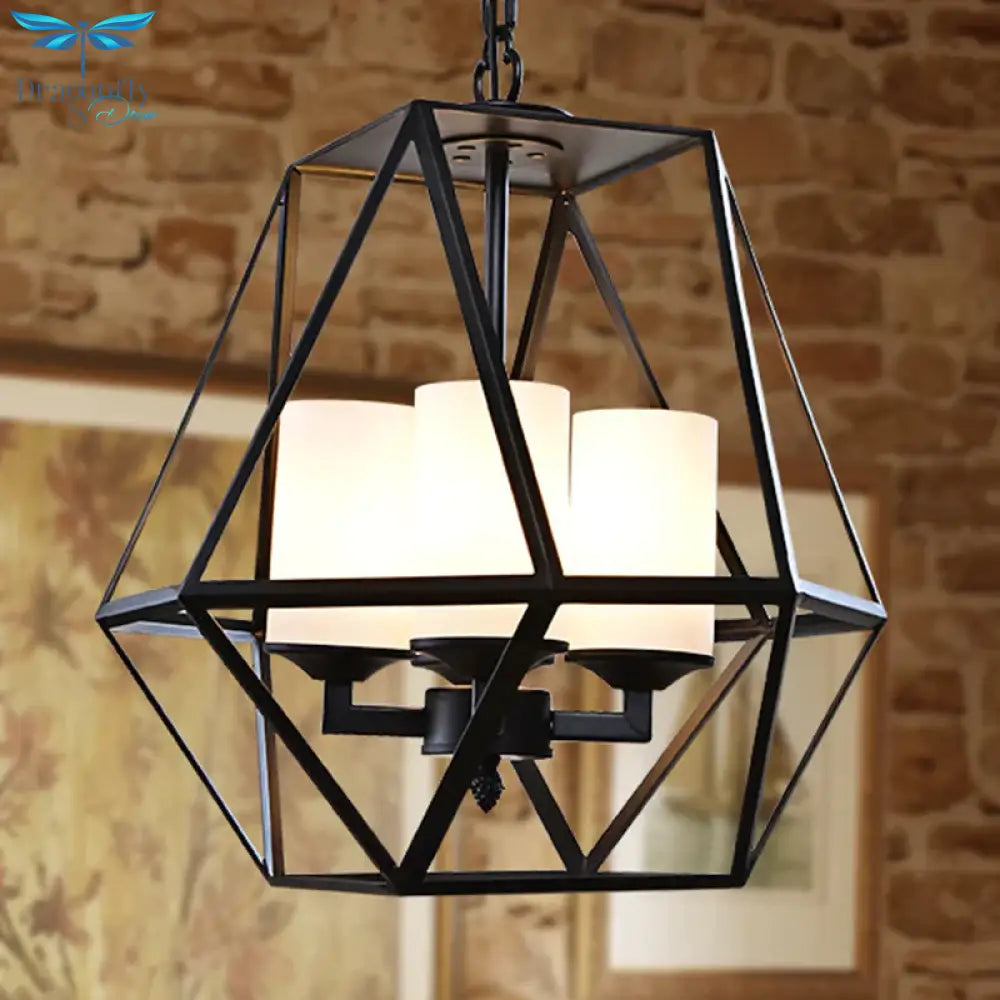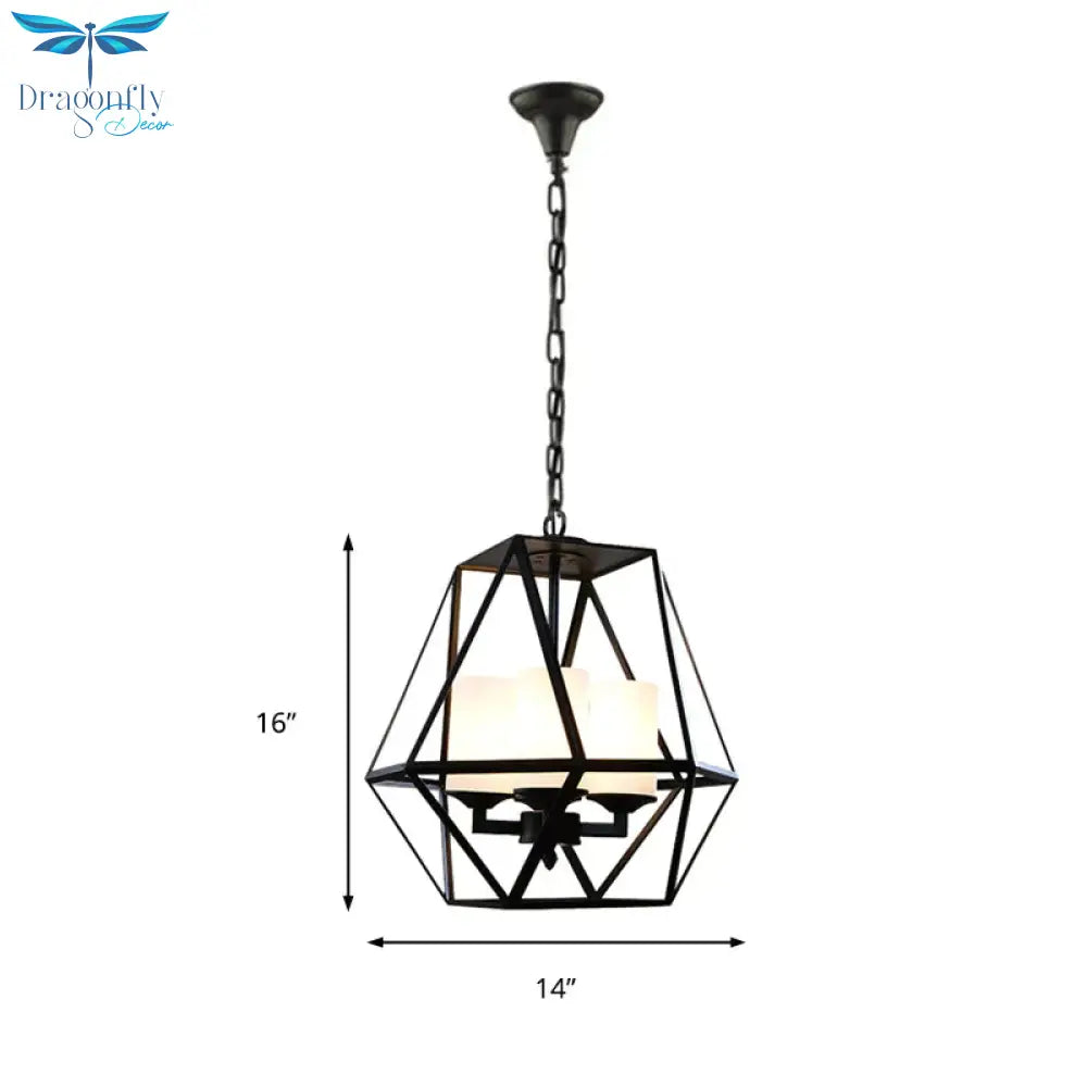 3/4 Lights Ceiling Light Traditional Geometric Frosted Glass Hanging Chandelier in Black with Cylinder Shade