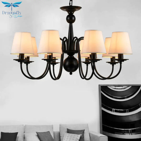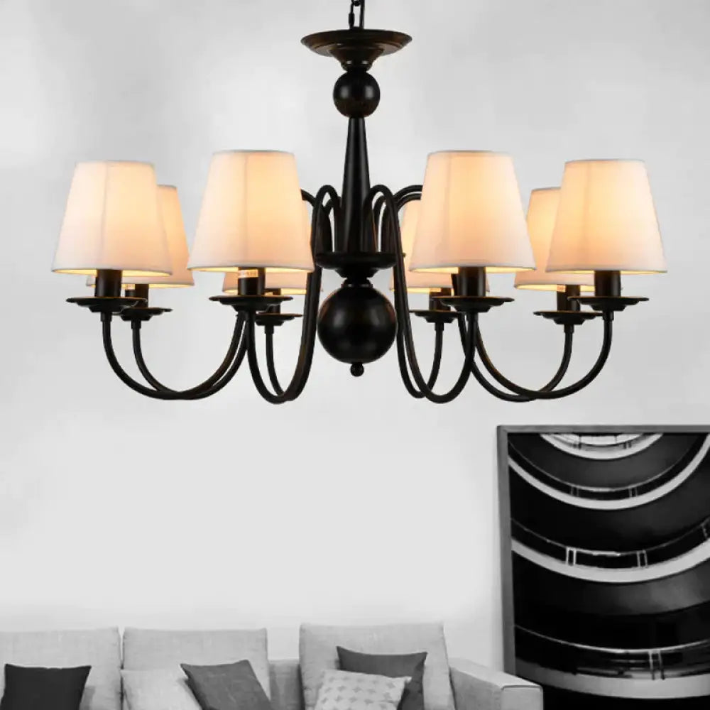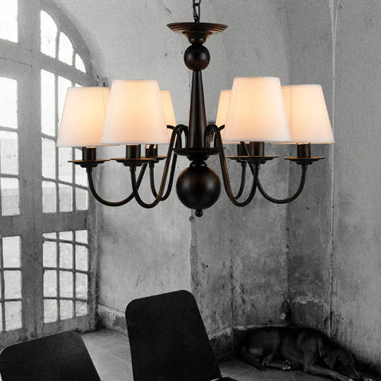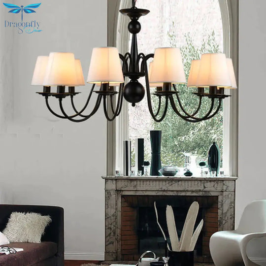 3/5/6 Lights Chandelier Light Fixture Traditional White Fabric Tapered Pendant Lamp for Living Room