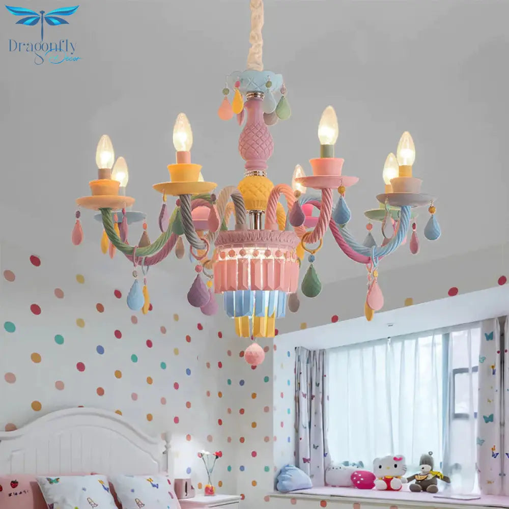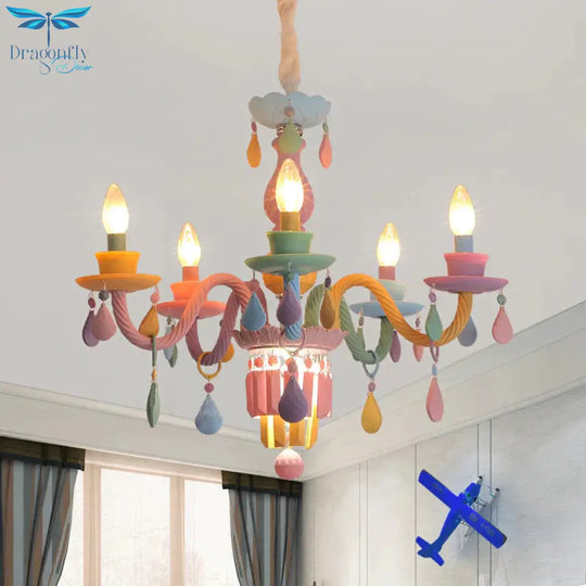 3/5 Bulbs Candle Chandelier Pendant Light Macaron Glass Hanging Light