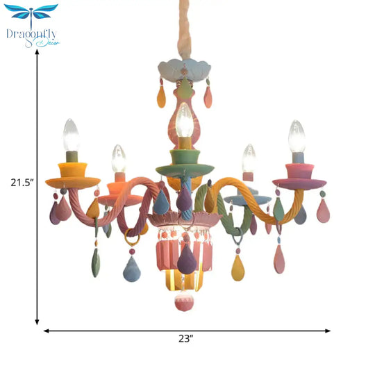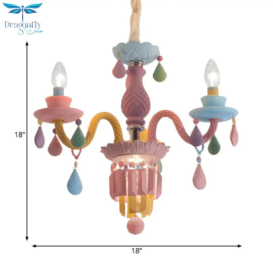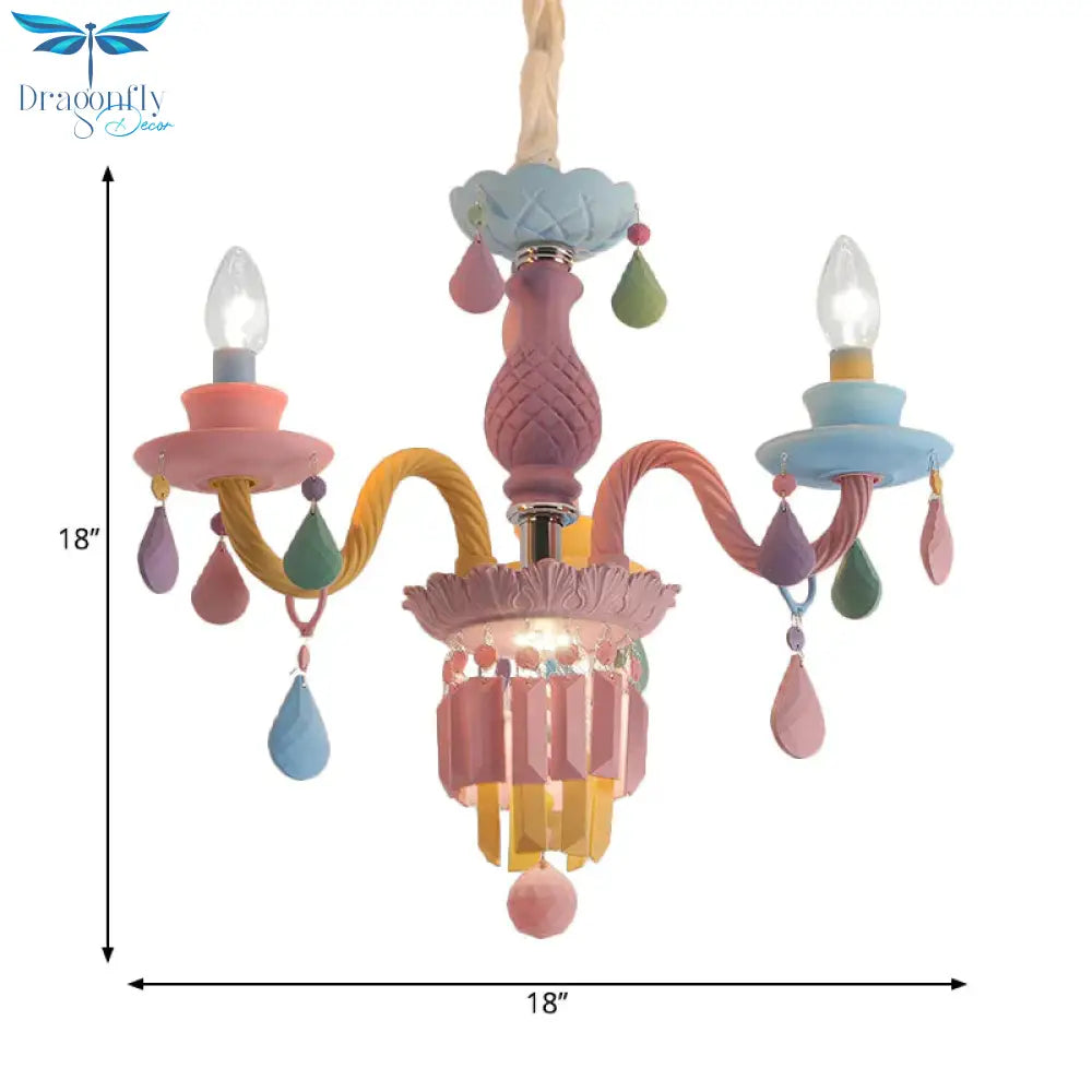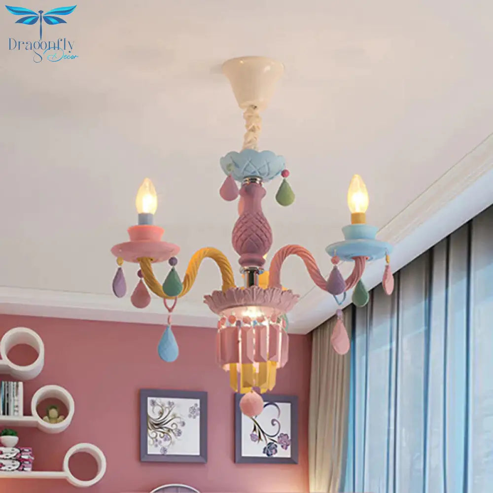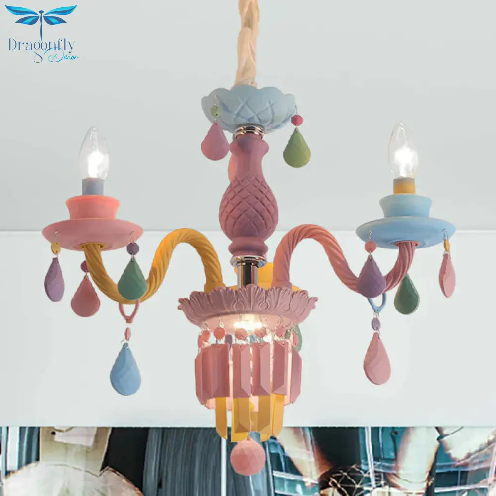 3/5 Bulbs Candle Chandelier Pendant Light Macaron Glass Hanging Light with Crystal Accent in Multi Color