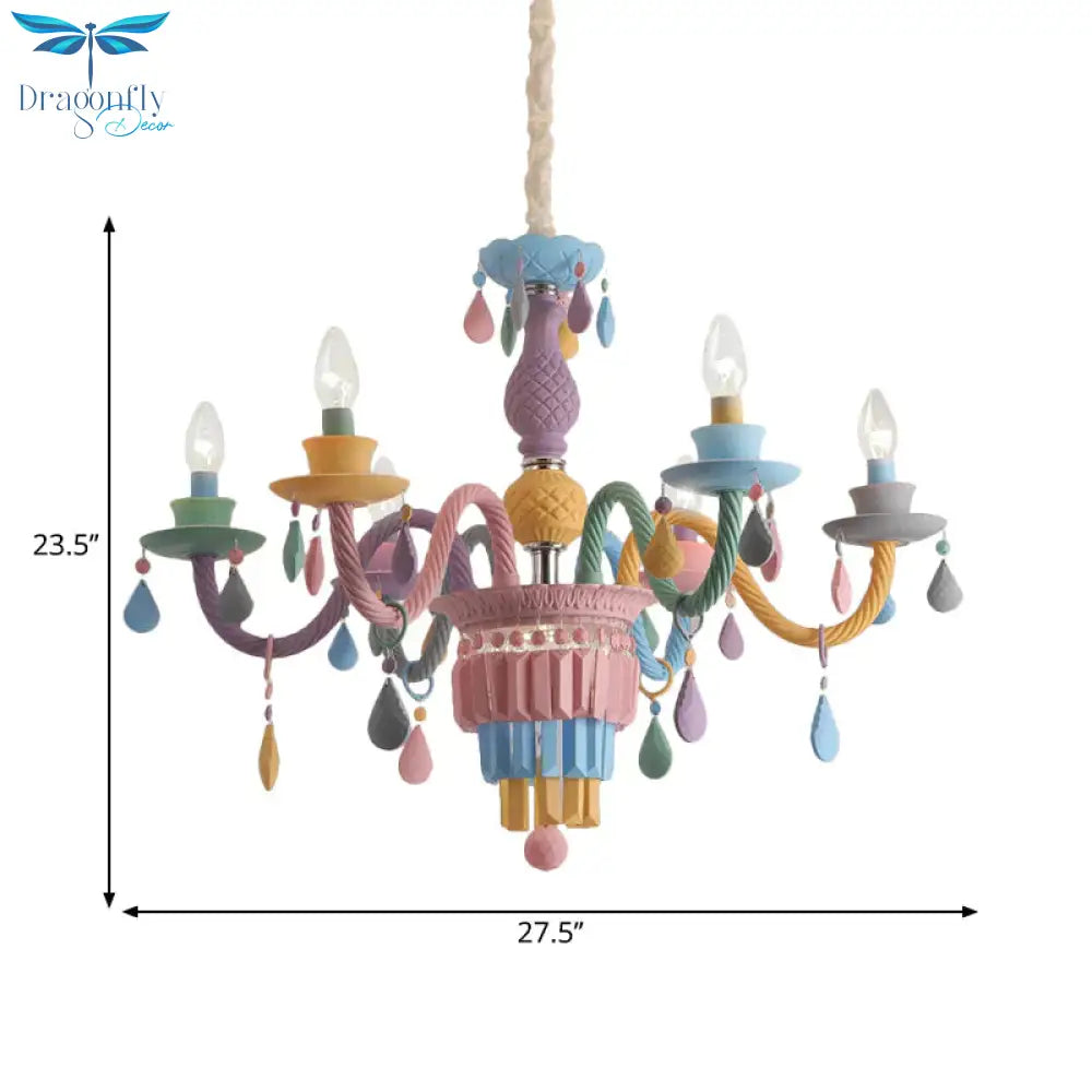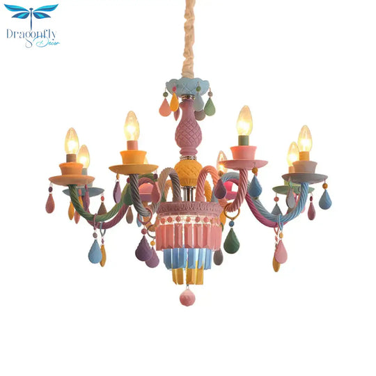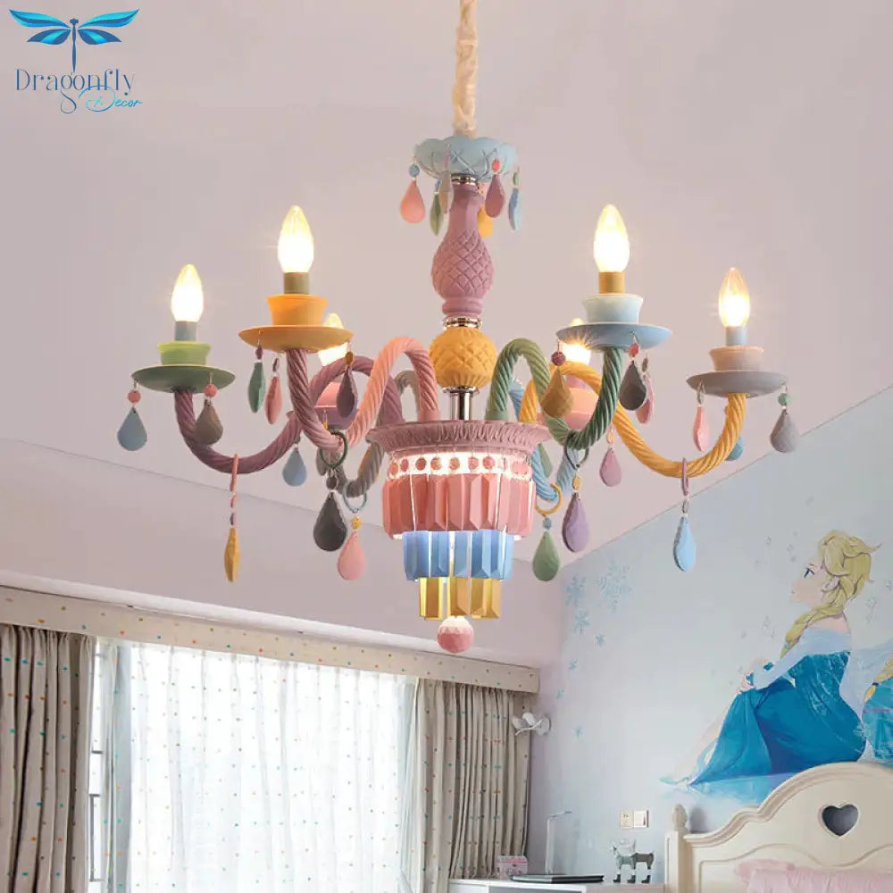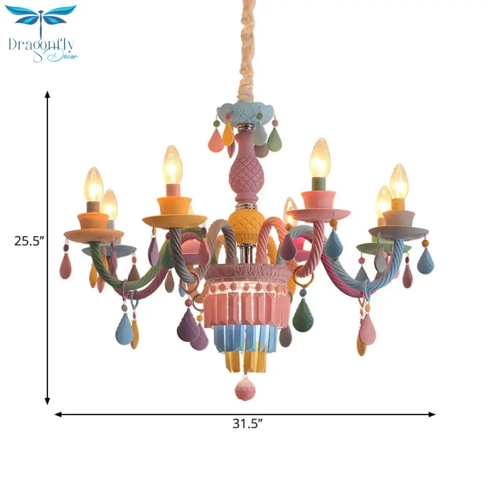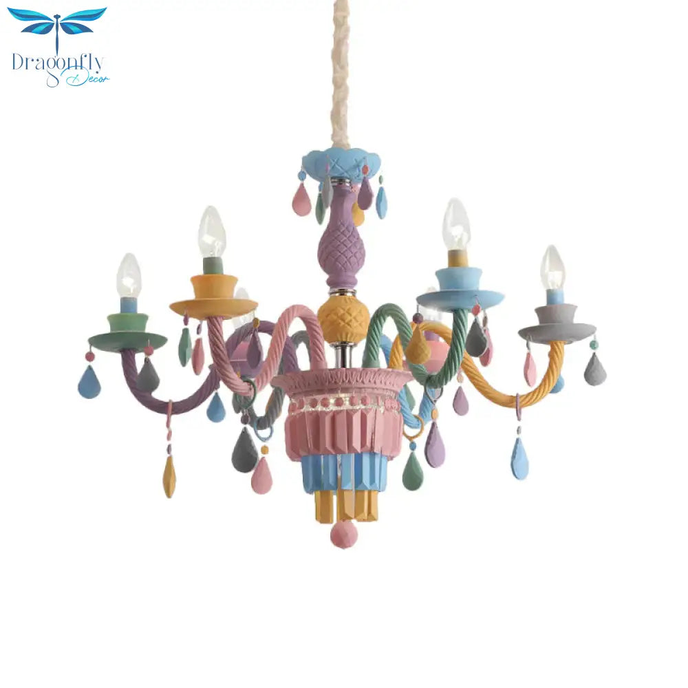 3/5 Bulbs Candle Chandelier Pendant Light Macaron Glass Hanging Light with Crystal Accent in Multi Color