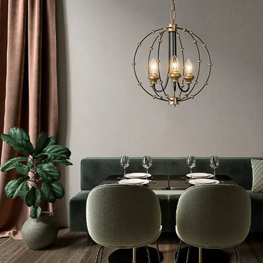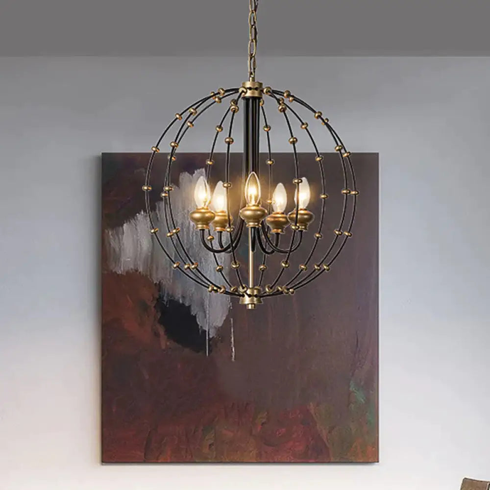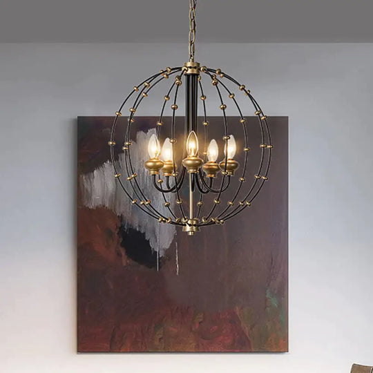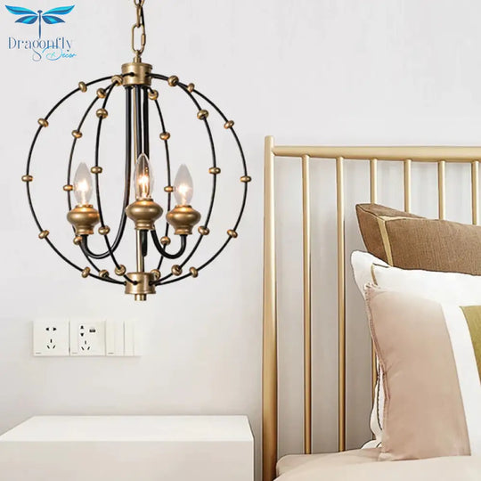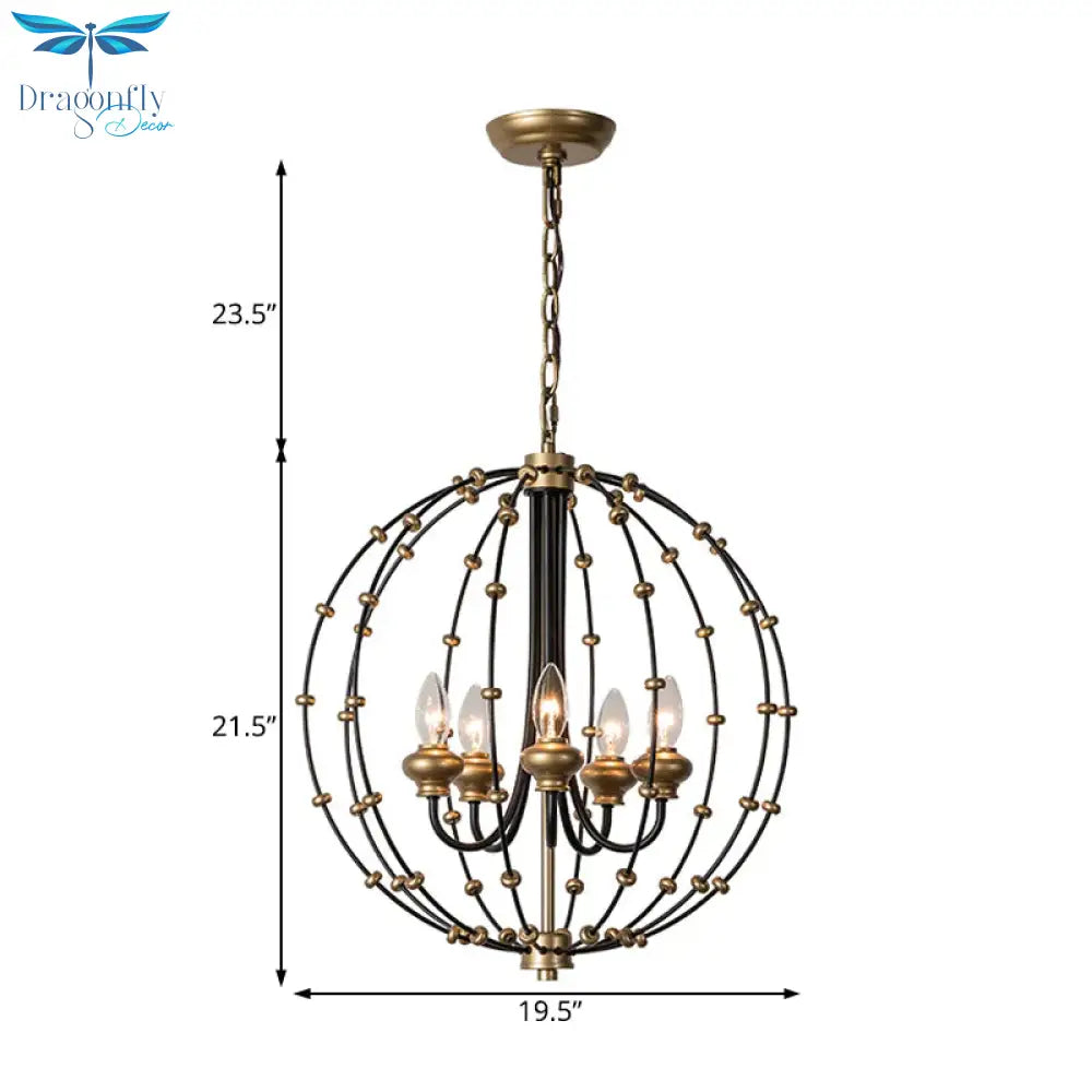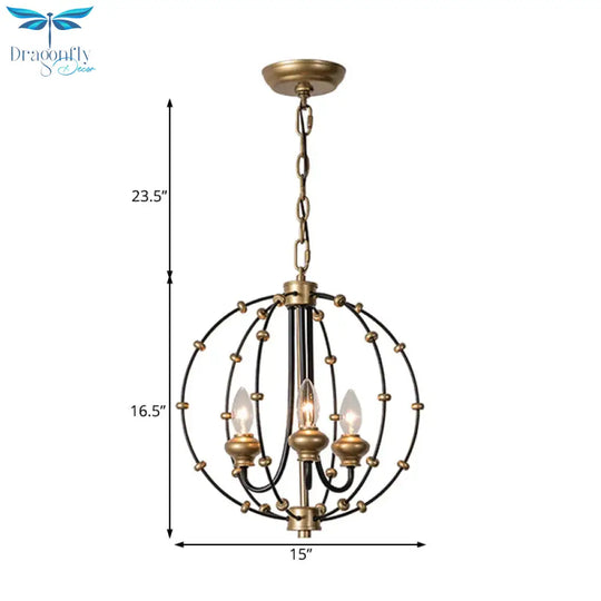 3/5 Bulbs Dining Room Ceiling Lamp Country Black Chandelier Pendant Light with Globe Metal Cage, 15"/19.5" Wide