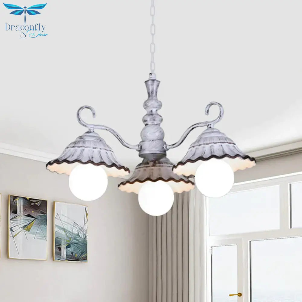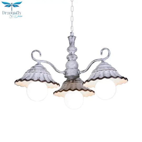 3/5 Bulbs Pendant Chandelier Countryside Scalloped Conic Ceramics Down