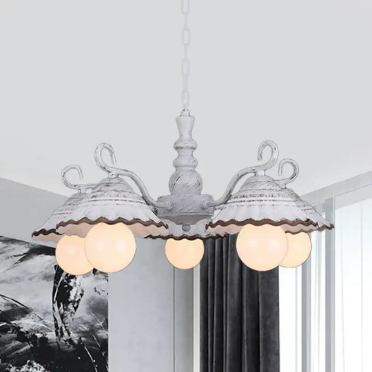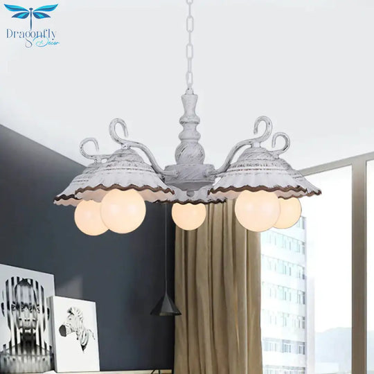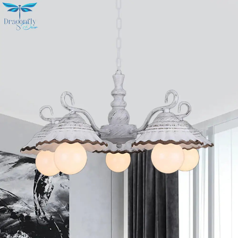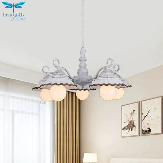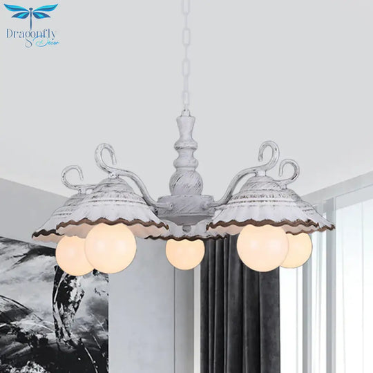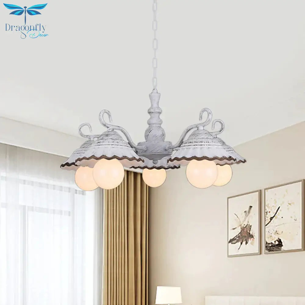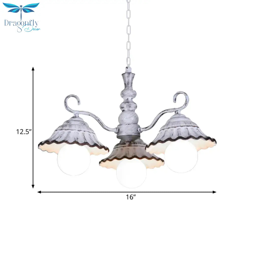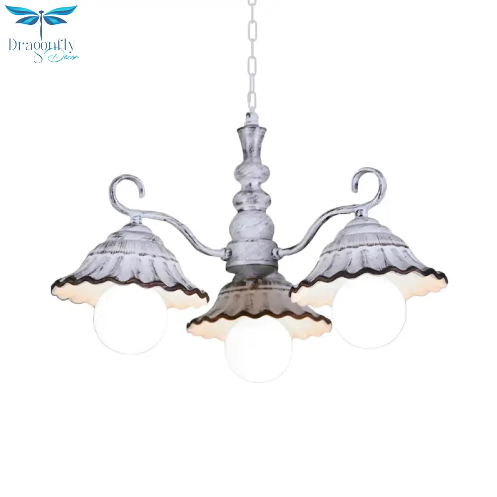 3/5 Bulbs Pendant Chandelier Countryside Scalloped Conic Ceramics Down Lighting in White