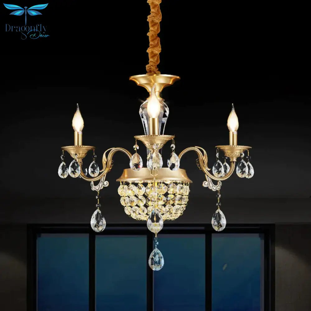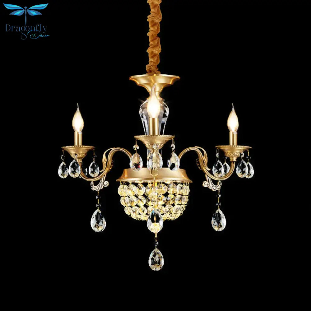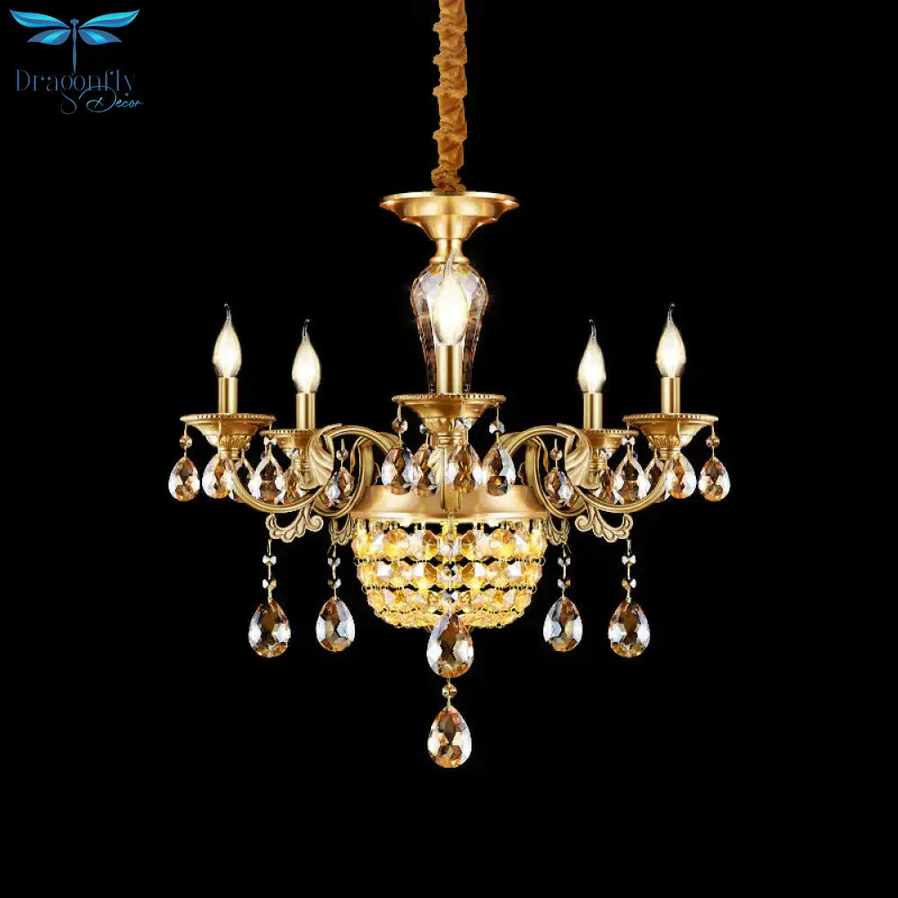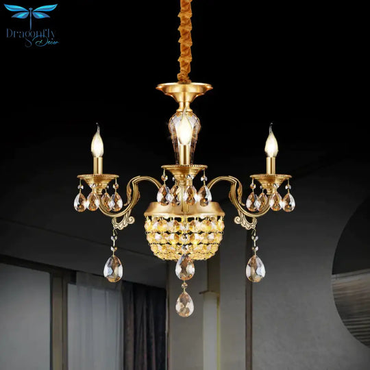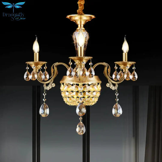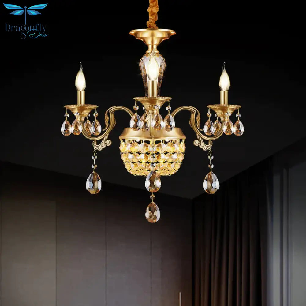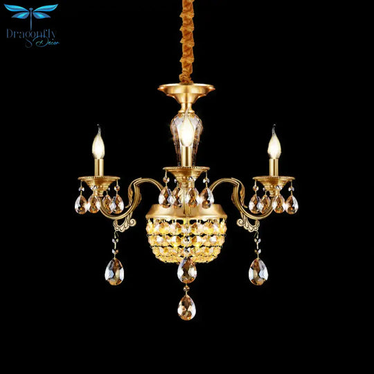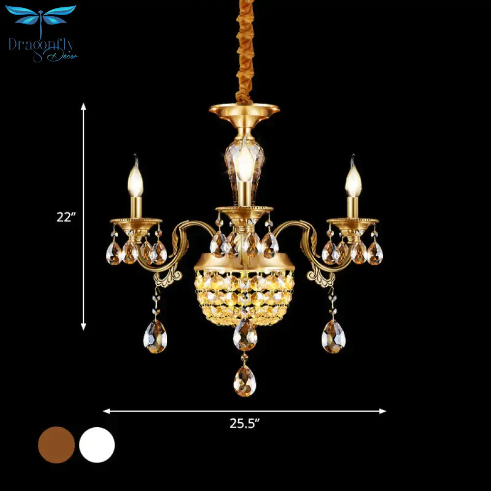 3/5 Heads Chandelier Lamp Traditional Candlestick Clear/Amber Crystal Accents Suspension Pendant