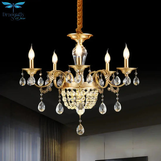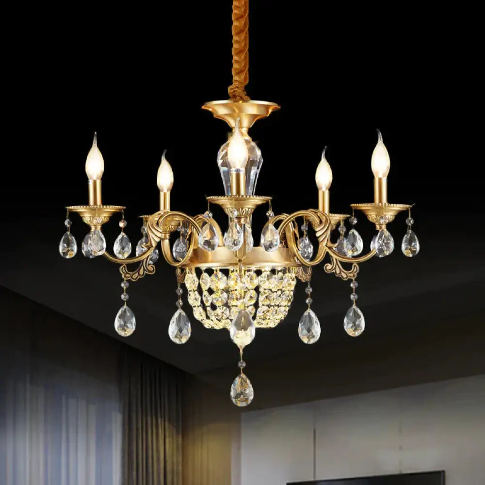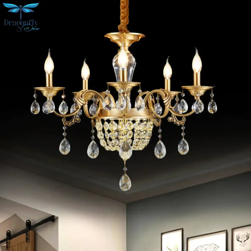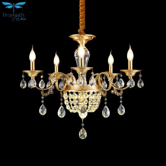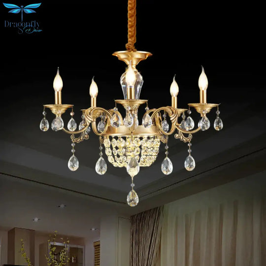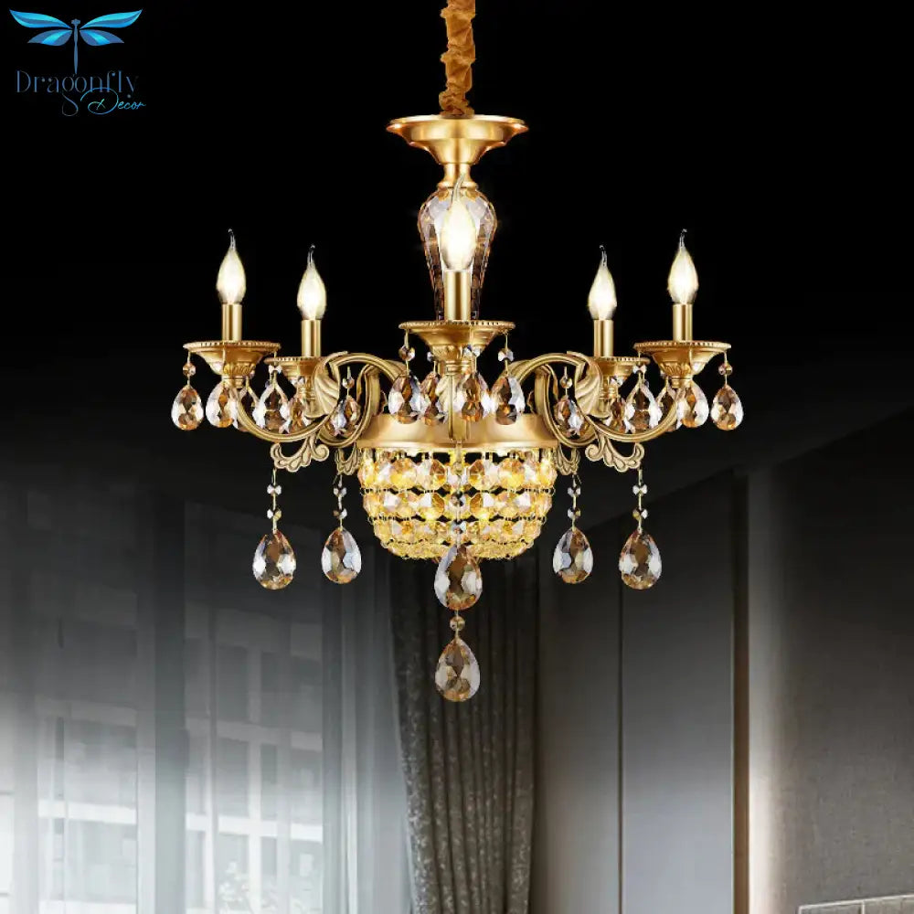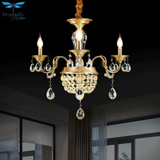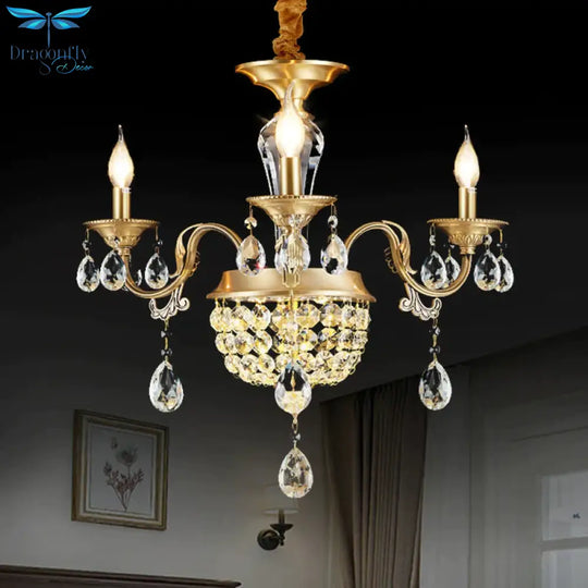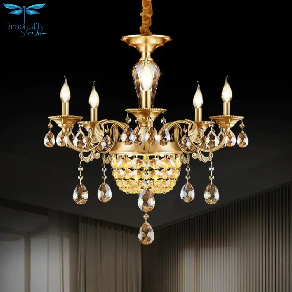 3/5 Heads Chandelier Lamp Traditional Candlestick Clear/Amber Crystal Accents Suspension Pendant