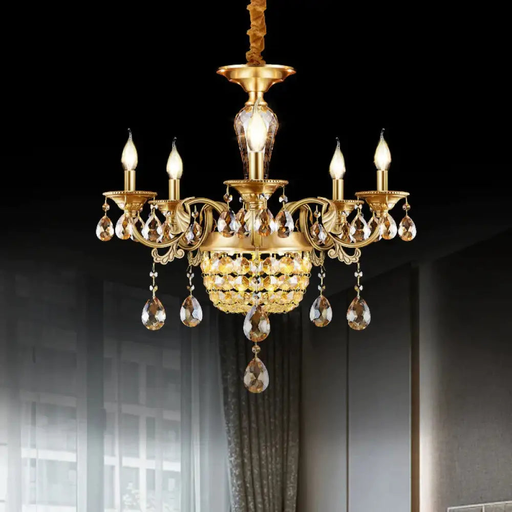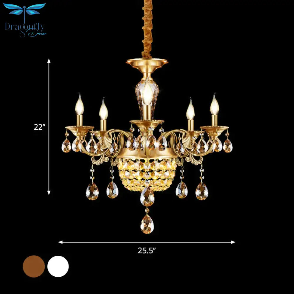 3/5 Heads Chandelier Lamp Traditional Candlestick Clear/Amber Crystal