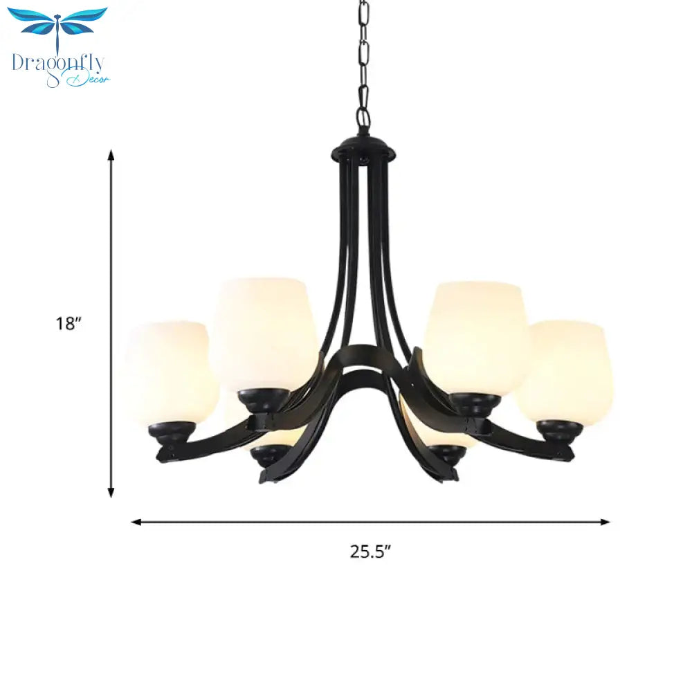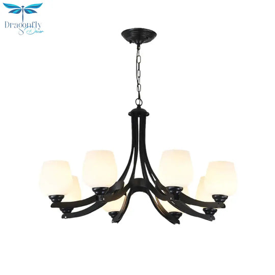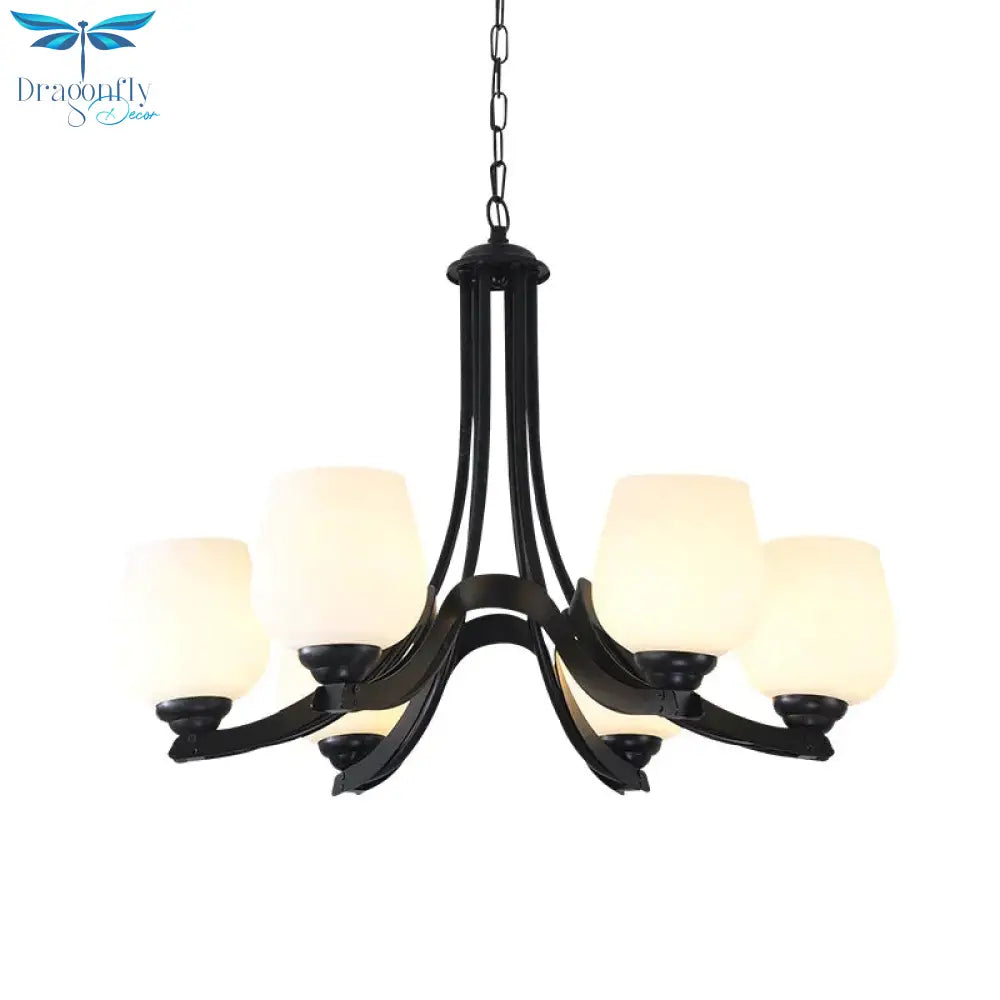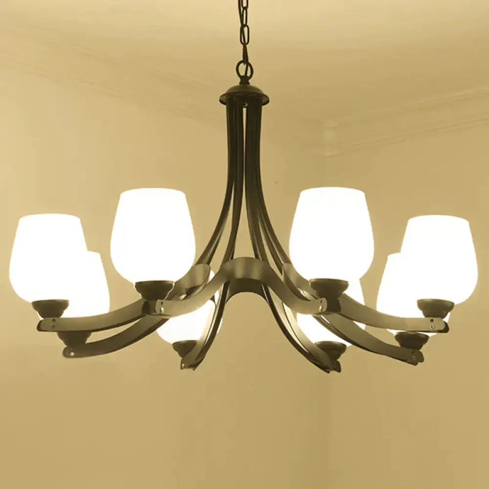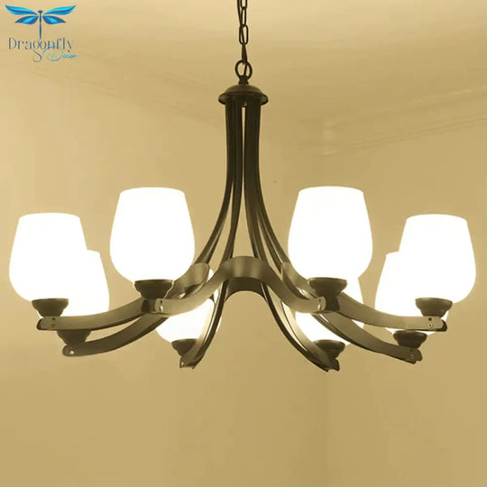 3/6/8 Lights Ceiling Lamp Sputnik Frosted Glass Traditional Living Room Chandelier in Black with Cup Shaped
