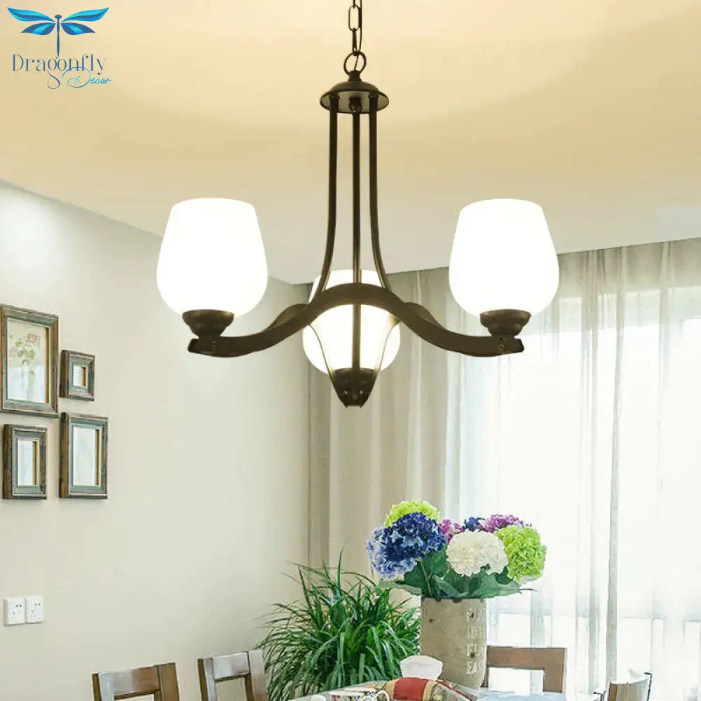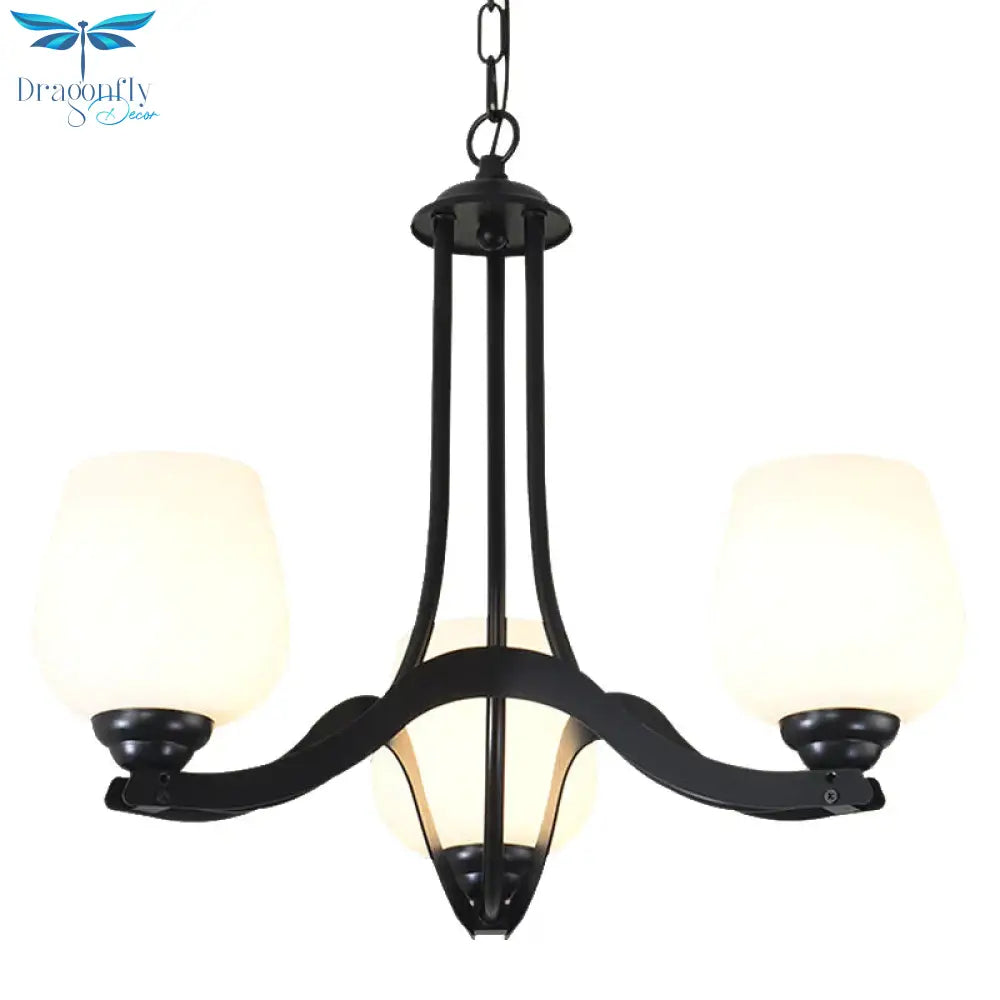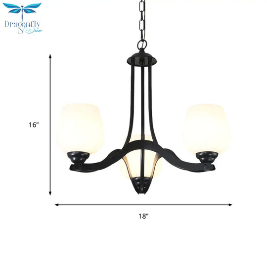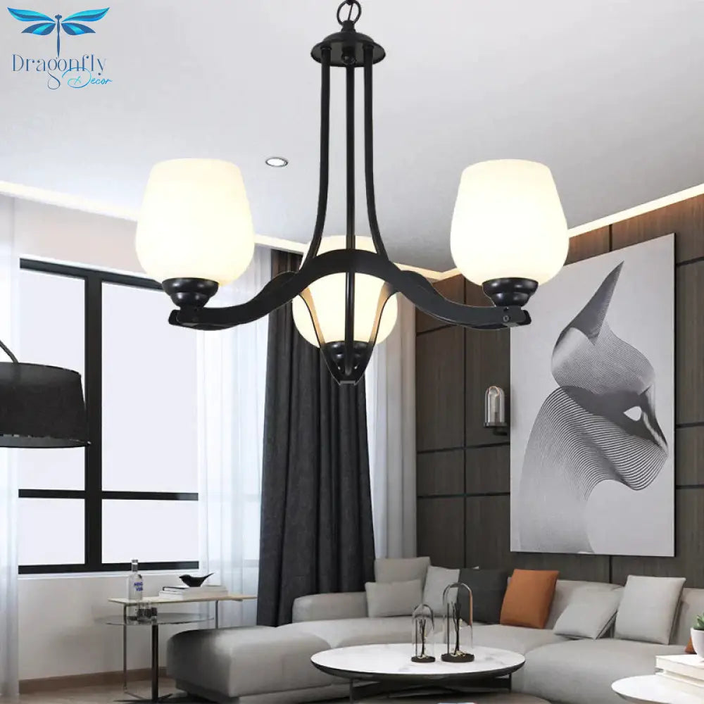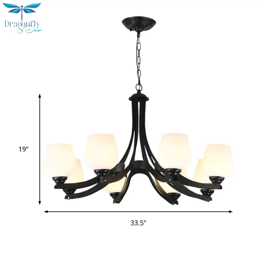 3/6/8 Lights Ceiling Lamp Sputnik Frosted Glass Traditional Living Room Chandelier in Black with Cup Shaped