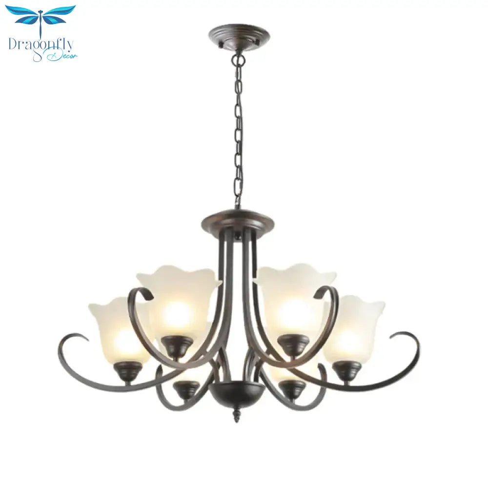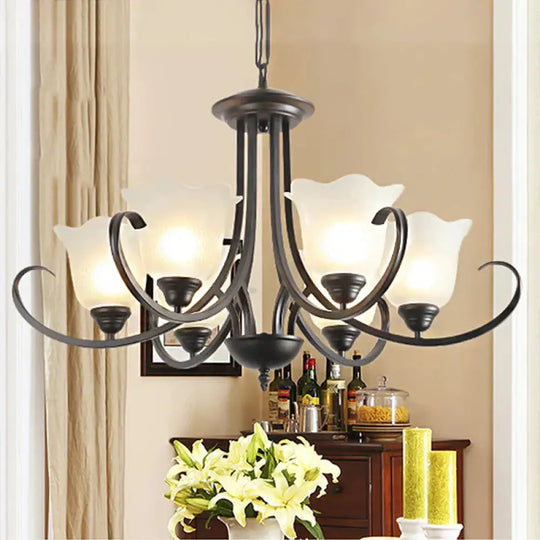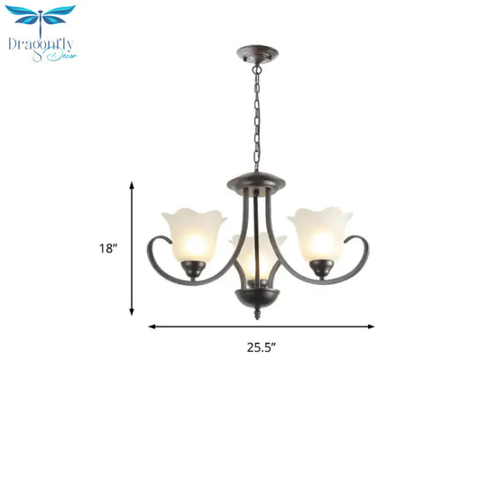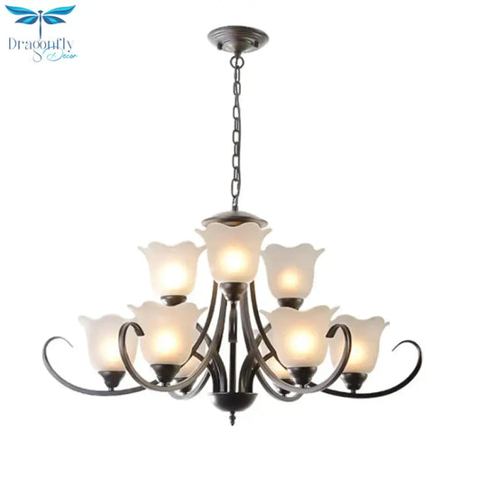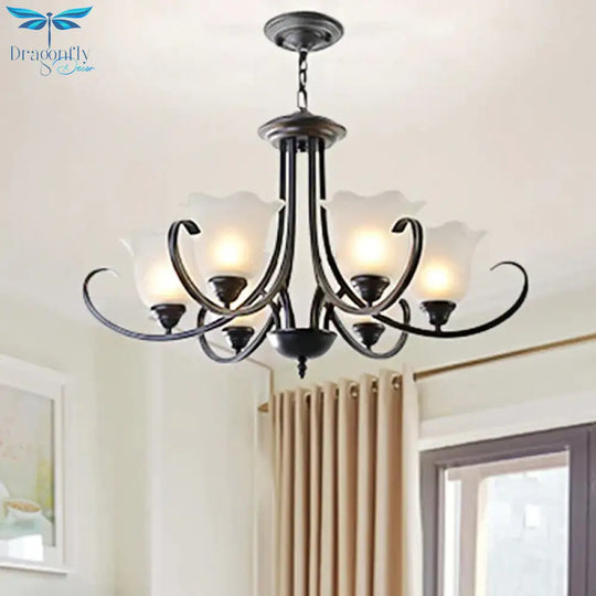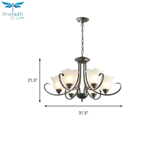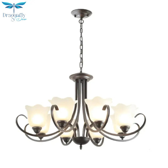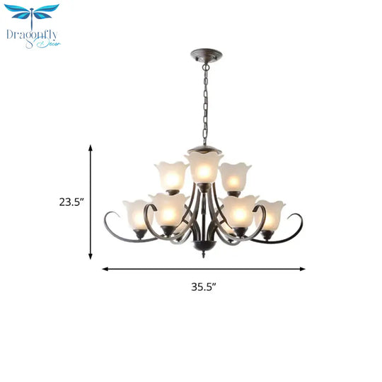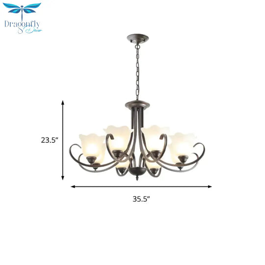 3/6/8 Lights Flared Chandelier Traditional Pewter Frosted Glass Pendant Light Fixture for Living Room
