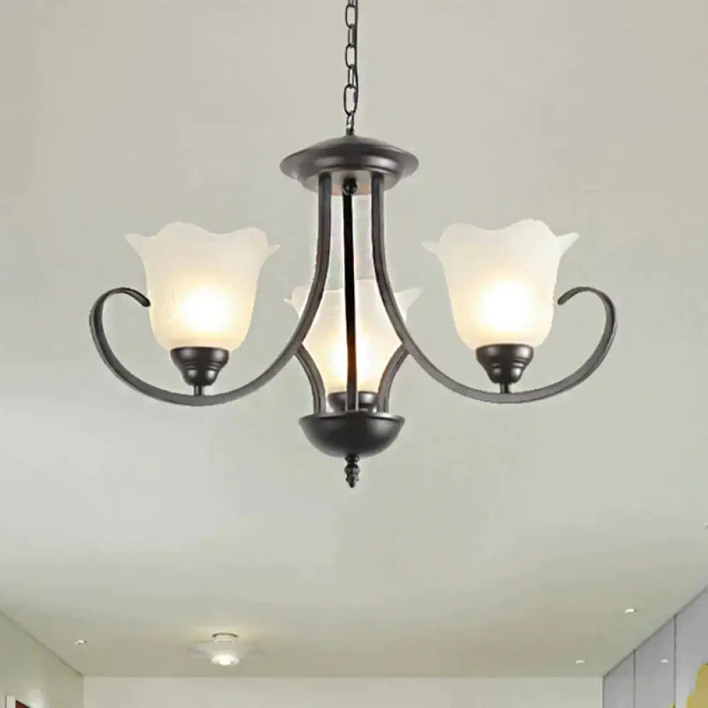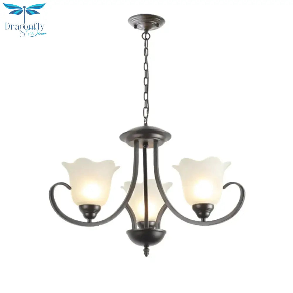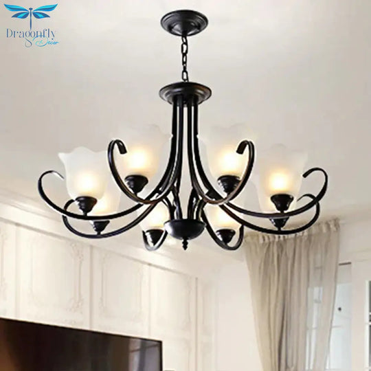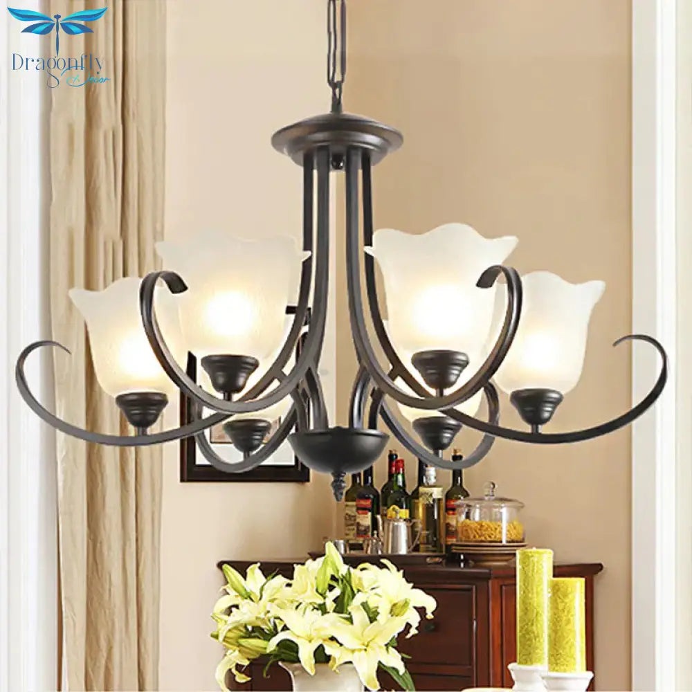 3/6/8 Lights Flared Chandelier Traditional Pewter Frosted Glass Pendant Light Fixture for Living Room
