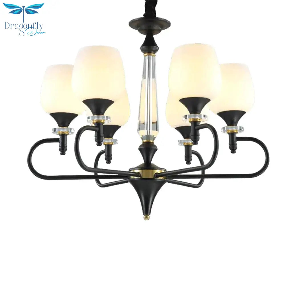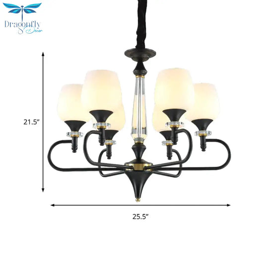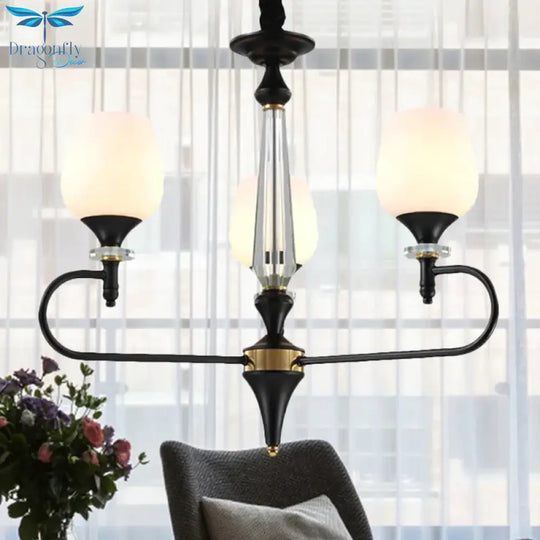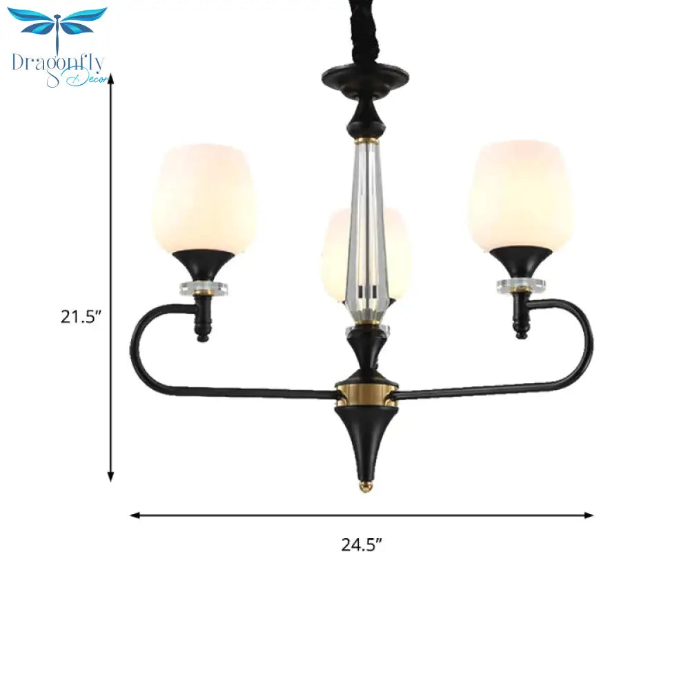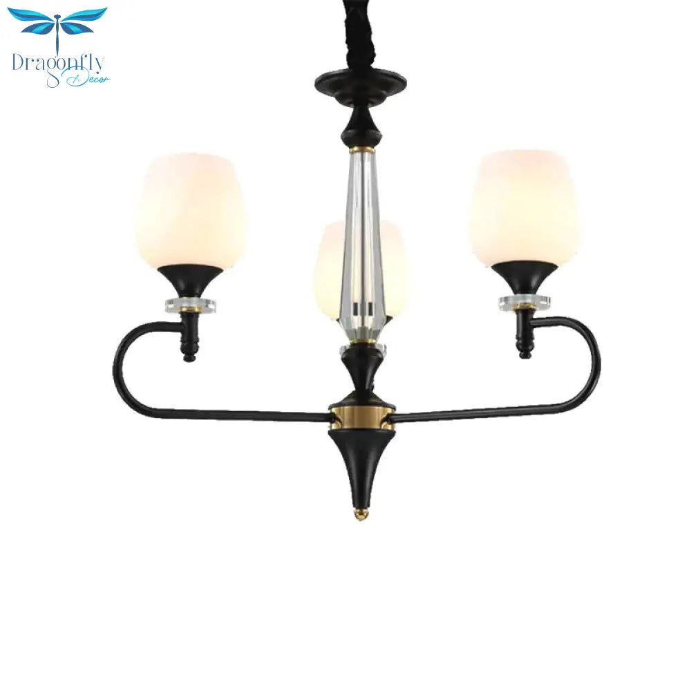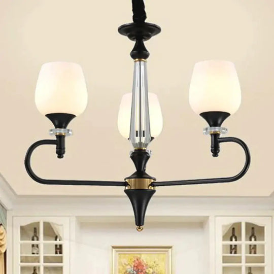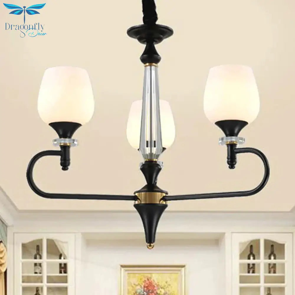 3/6 Lights Opal Glass Hanging Chandelier Traditional Matte Black Cone