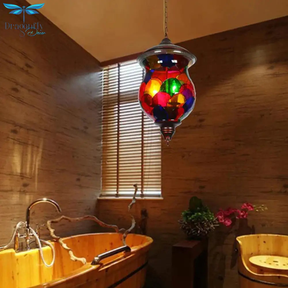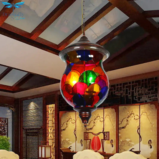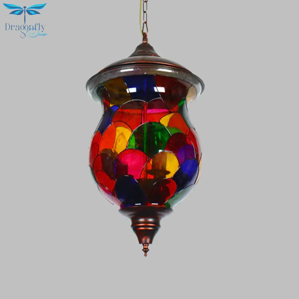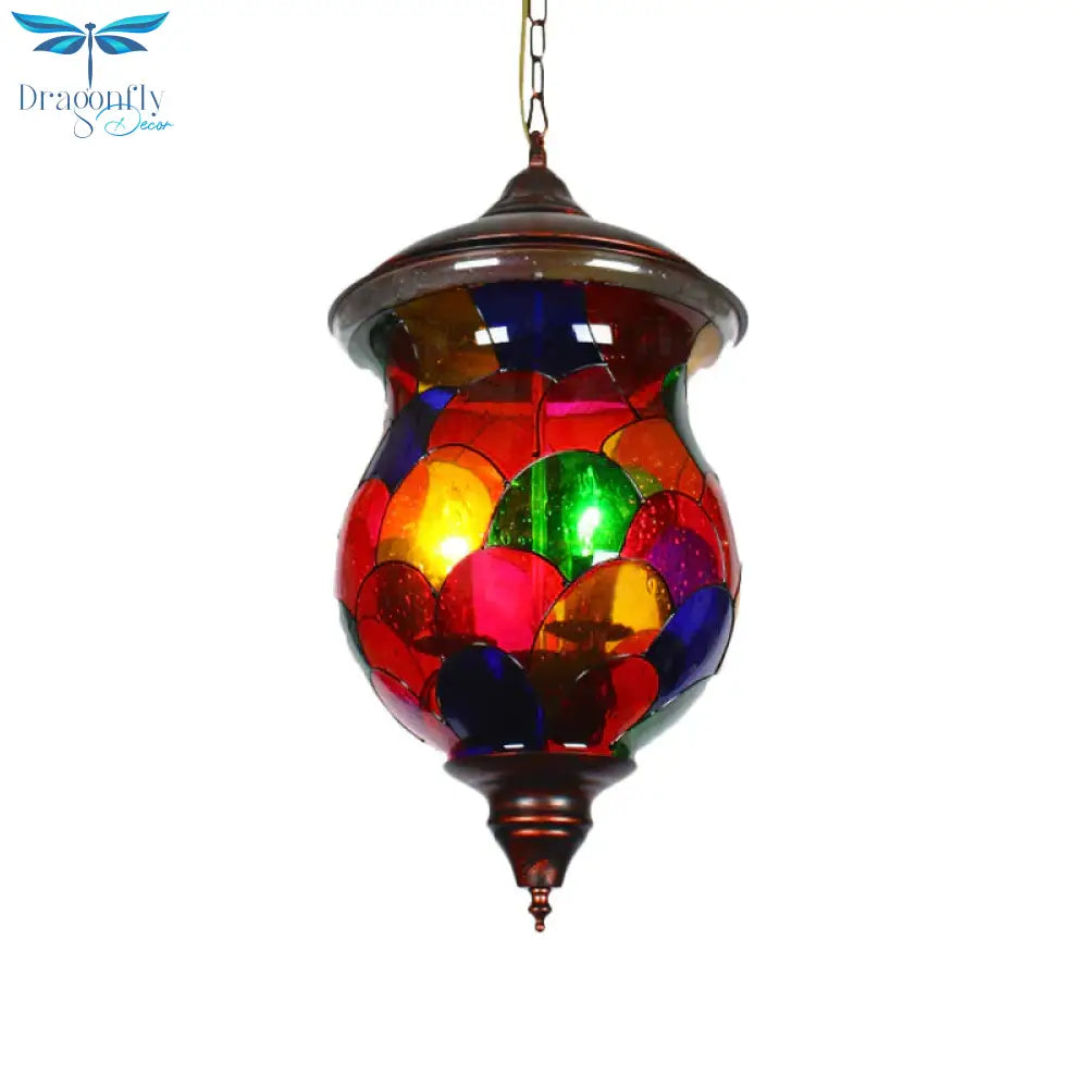 3 Bulbs Red Glass Chandelier Vintage Copper Urn Shape Bathroom Pendant Lighting Fixture