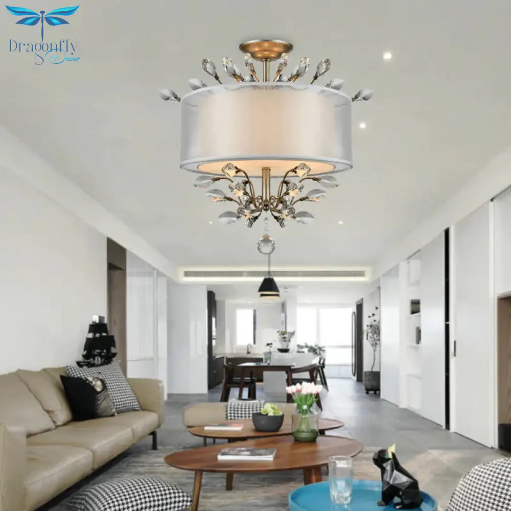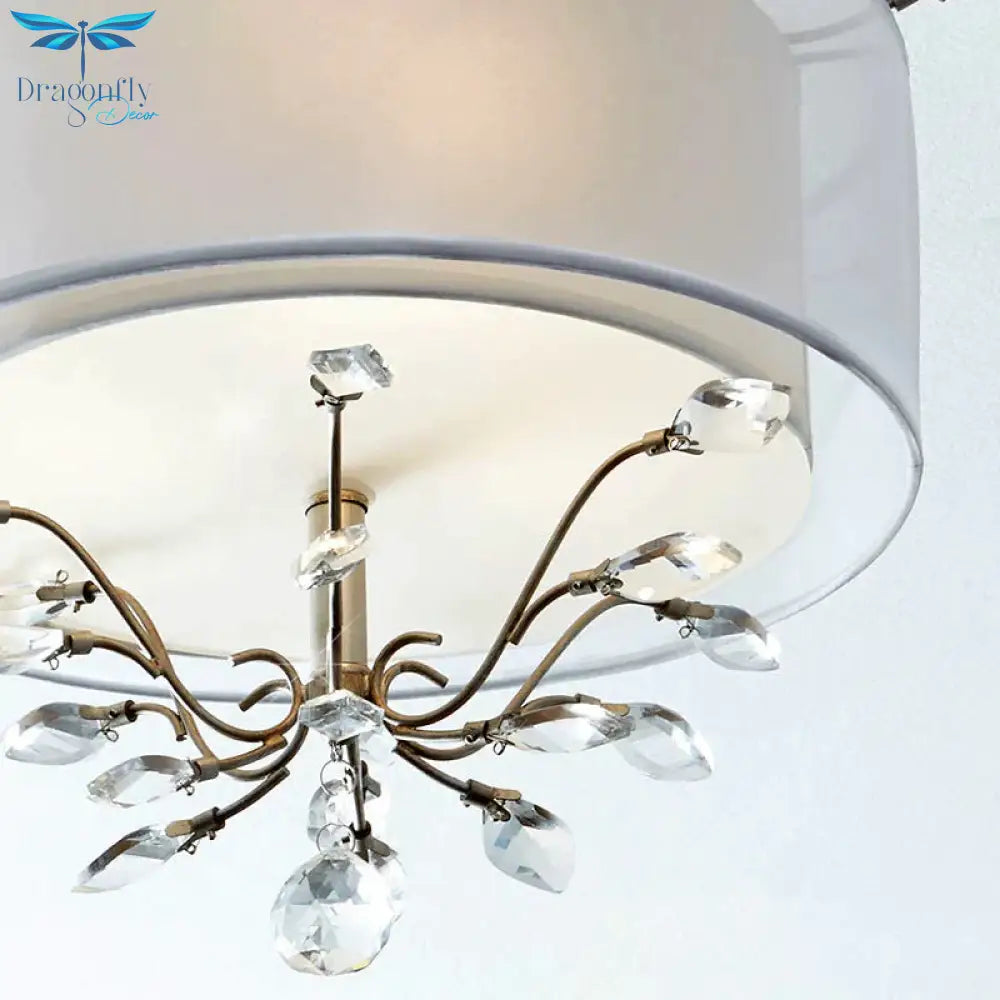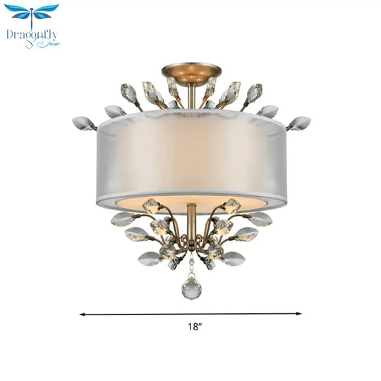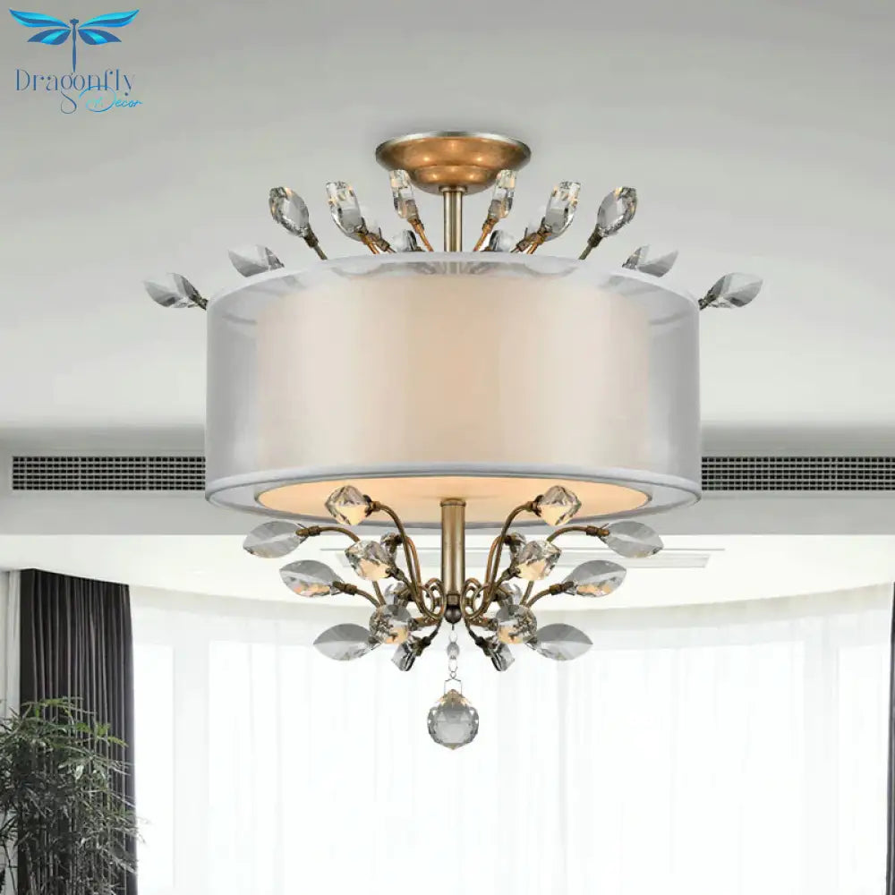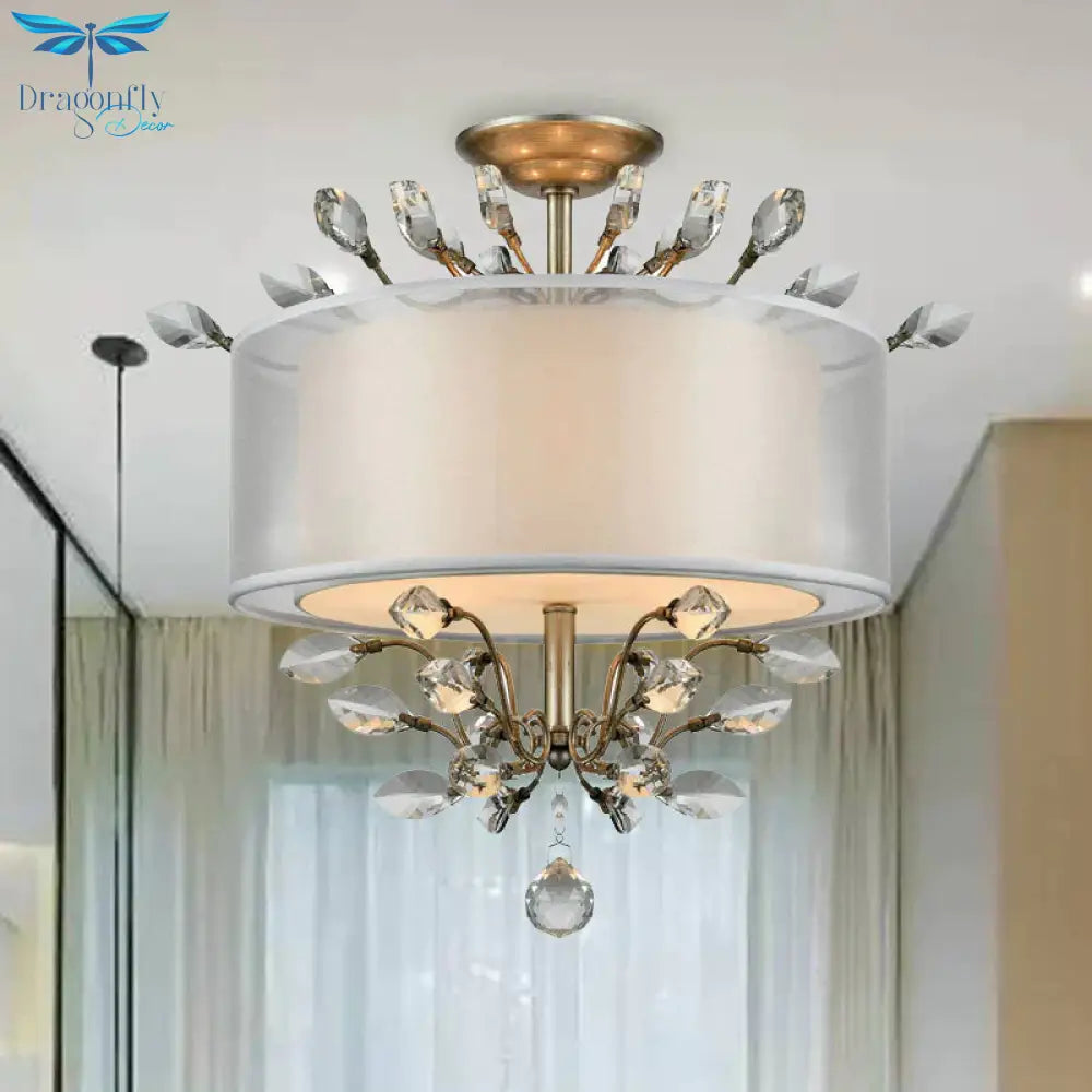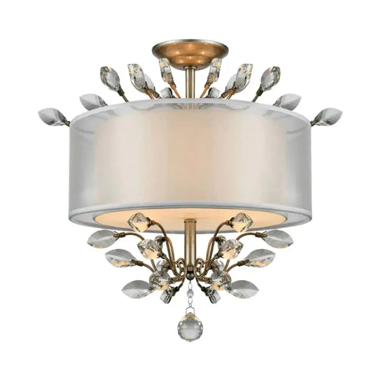 3 Heads Leaf Crystal Hanging Lamp Kit Modernism Silver Drum Living Room Chandelier Light