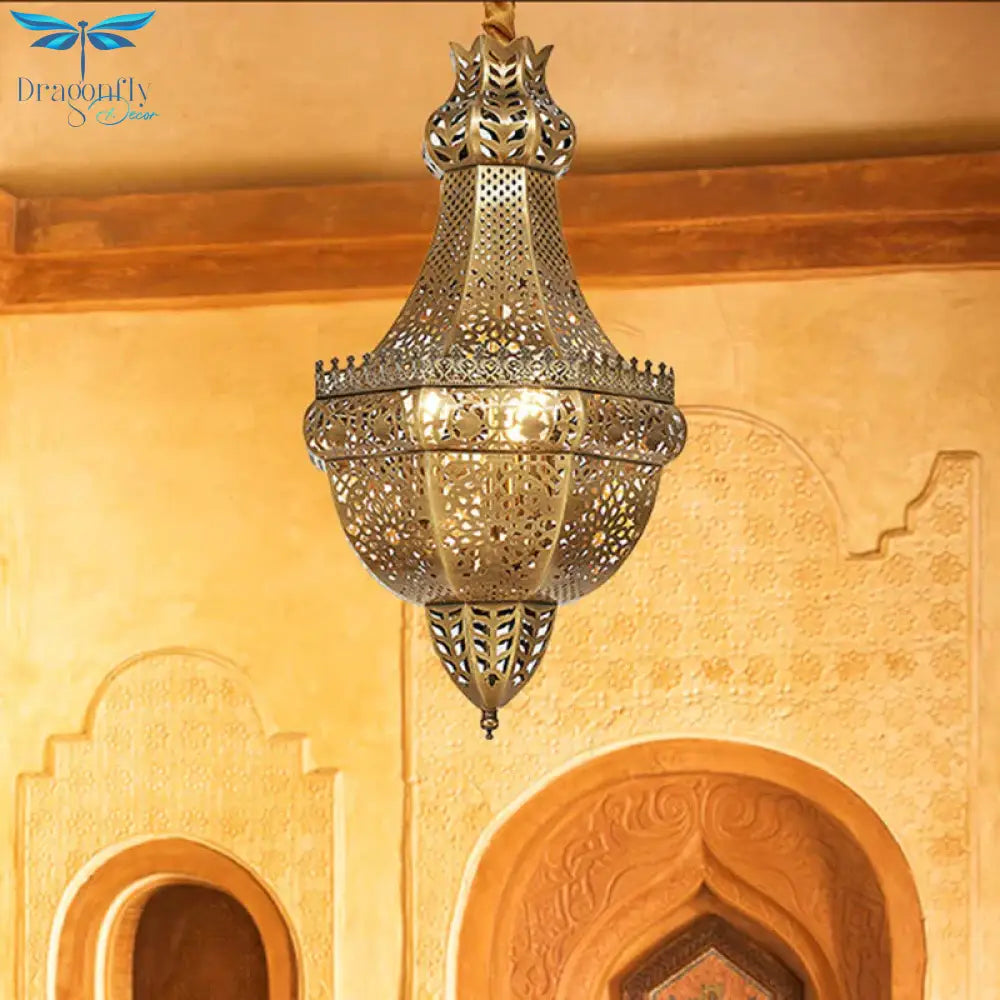 3-Light Chandelier Lighting Rustic Bedroom Suspension Pendant with Basket Metal Shade in Brass