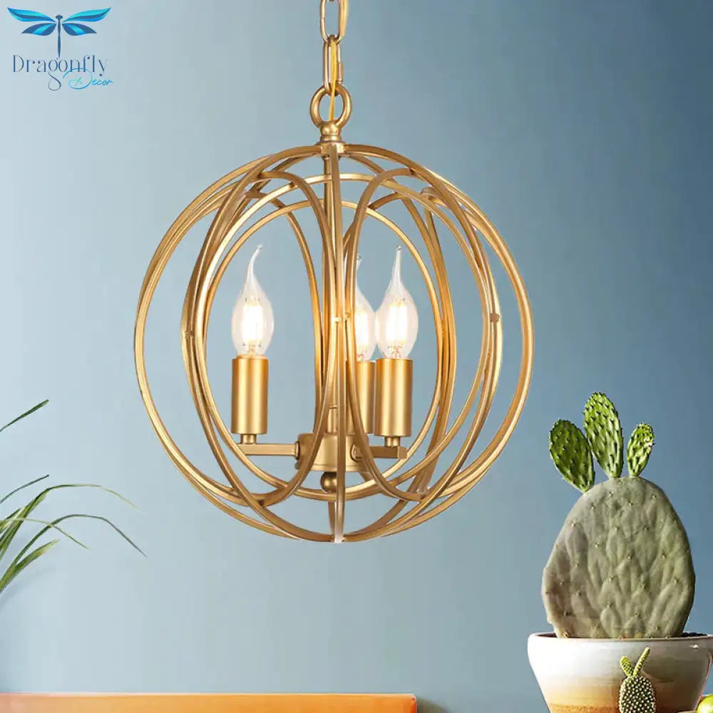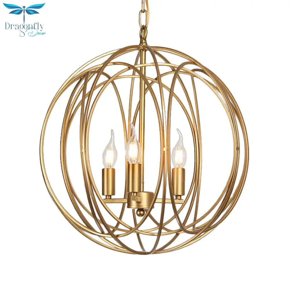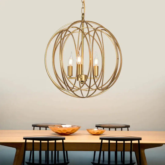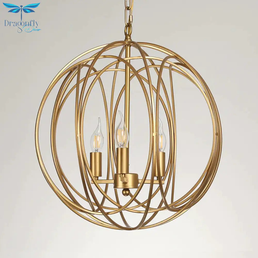 3 Lights Metal Hanging Chandelier Traditional Gold Candelabra Living R