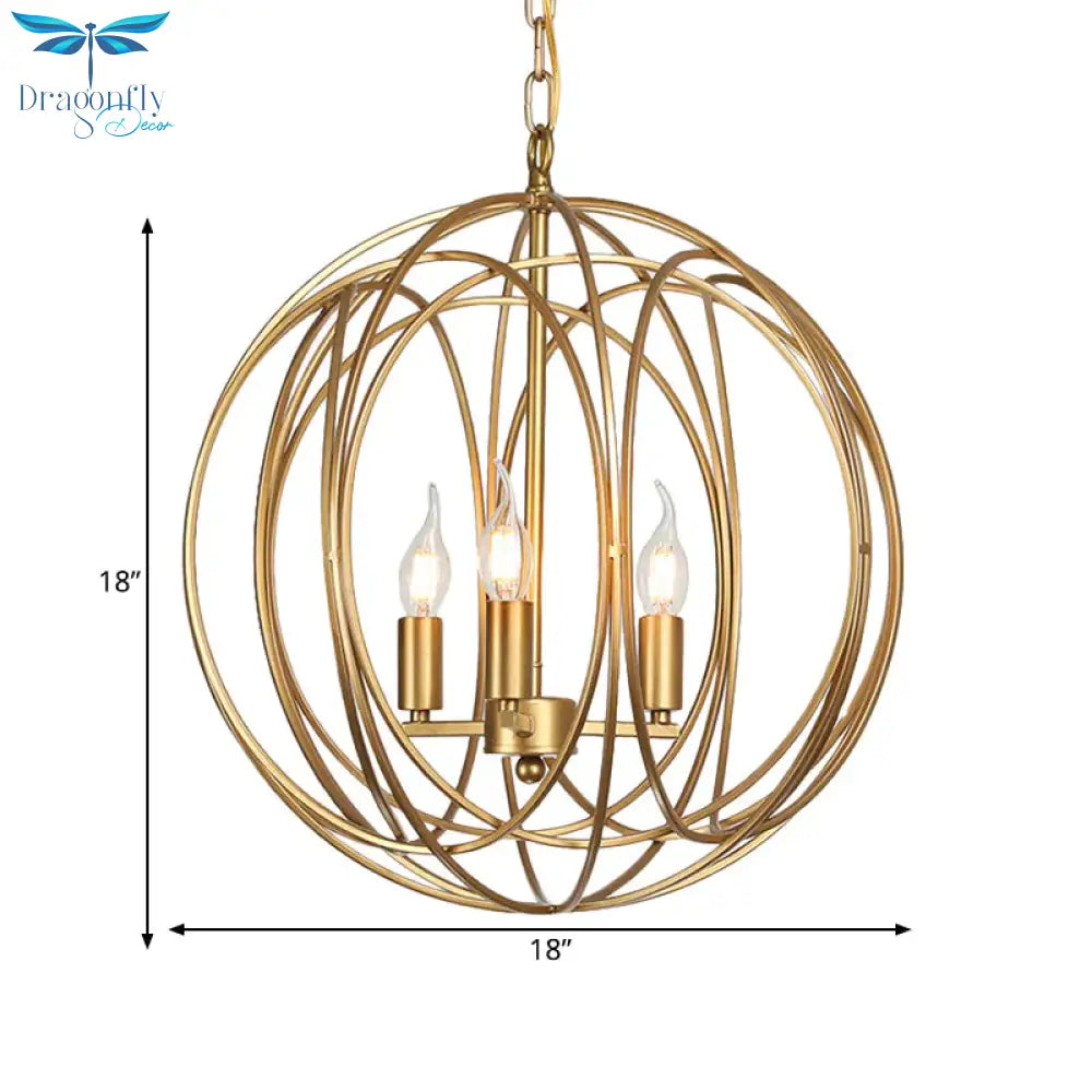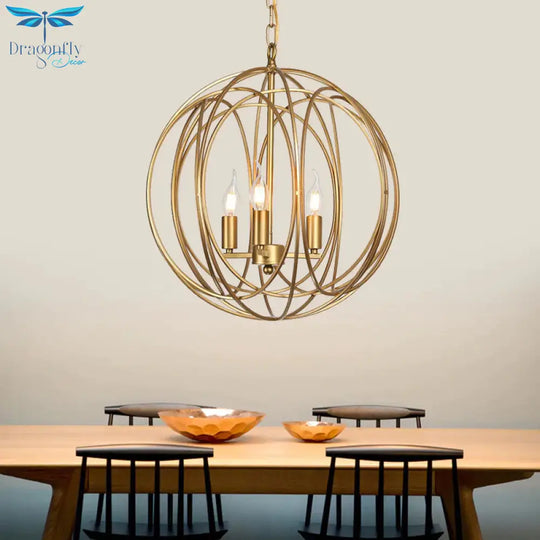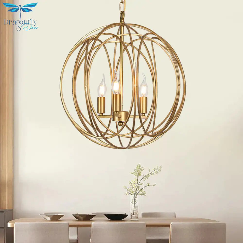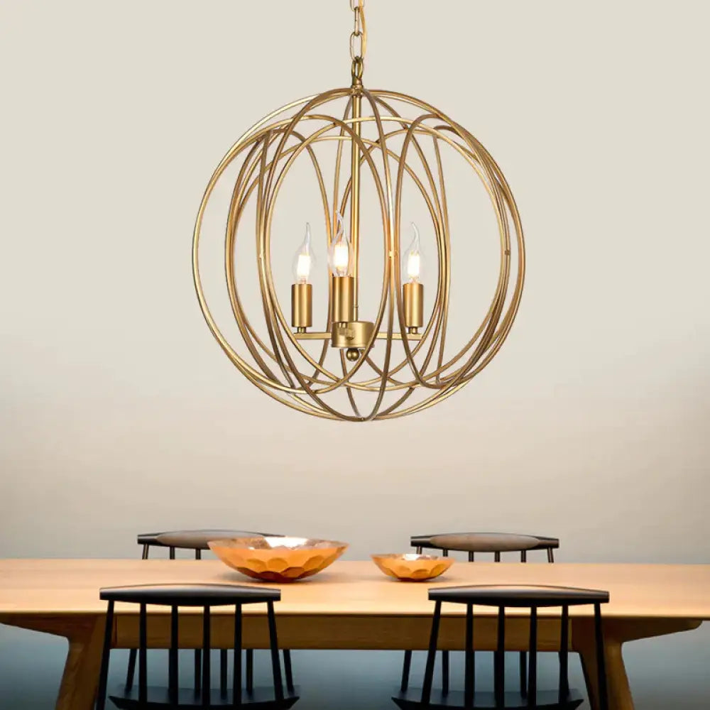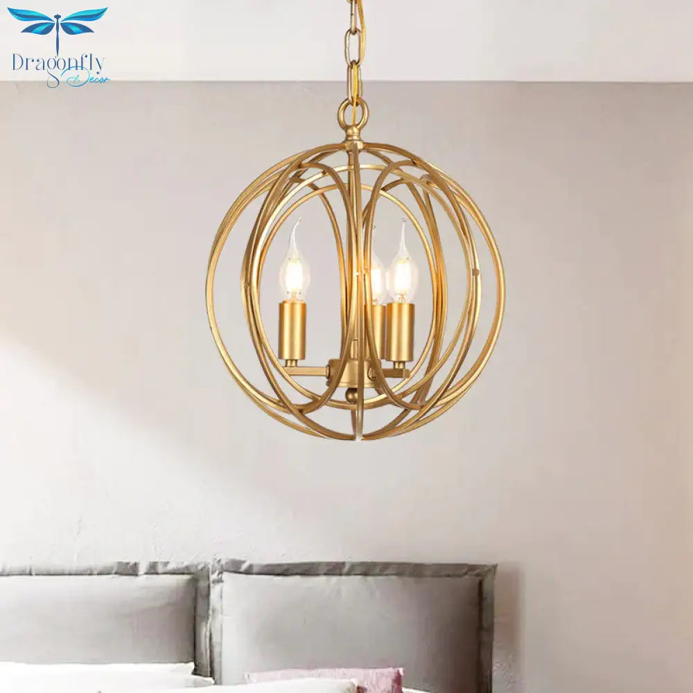 3 Lights Metal Hanging Chandelier Traditional Gold Candelabra Living R