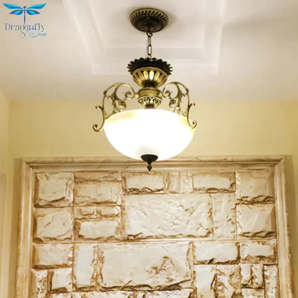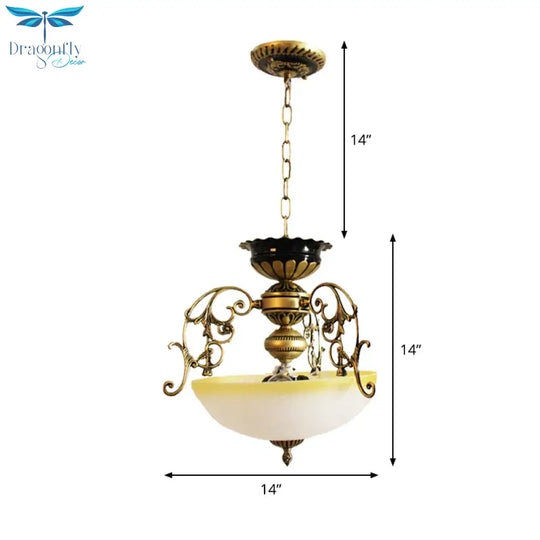 3 Lights Pendant Chandelier Country Bowl-Like Milk Glass Pendulum Ligh