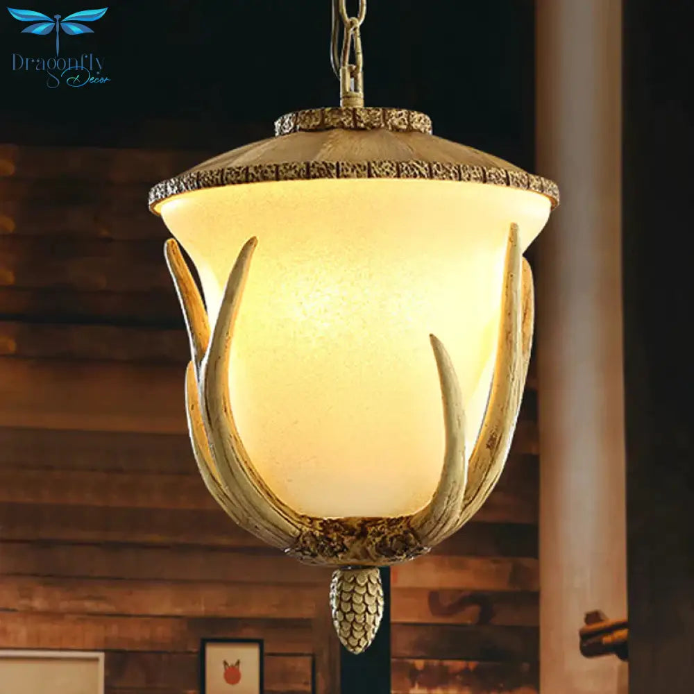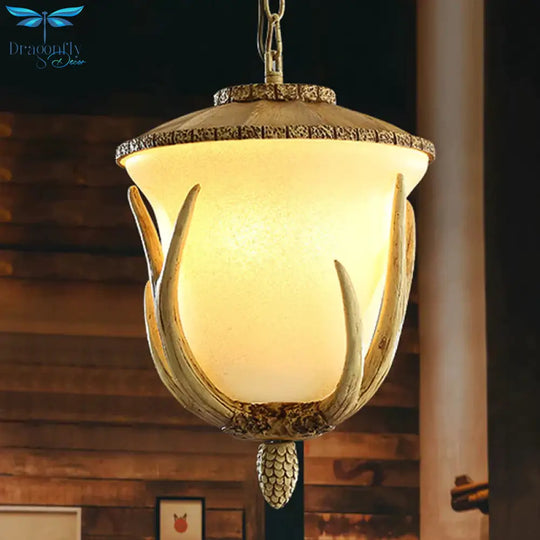 3 Lights Resin Hanging Lamp Country White Cup Shaped Restaurant Cluster Pendant with Elk Pattern