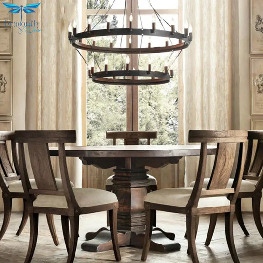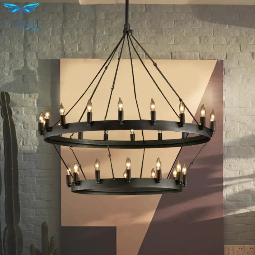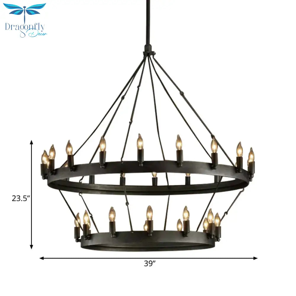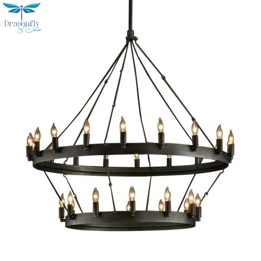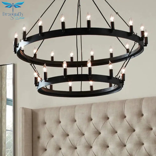30 Lights Candle Style Hanging Lamp Kit Countryside Black Metal Chandelier Lighting with Round Ring