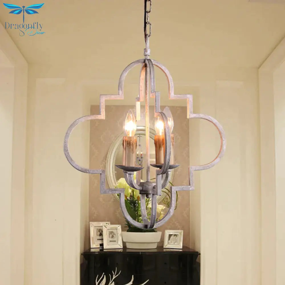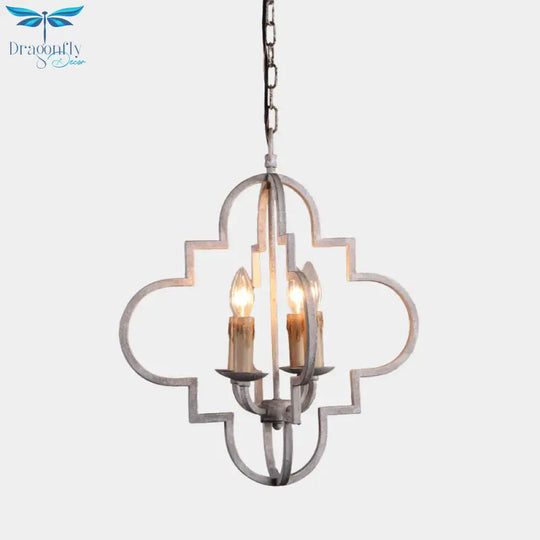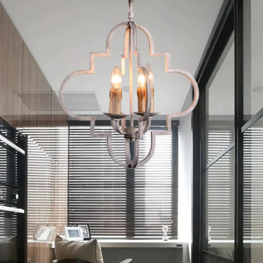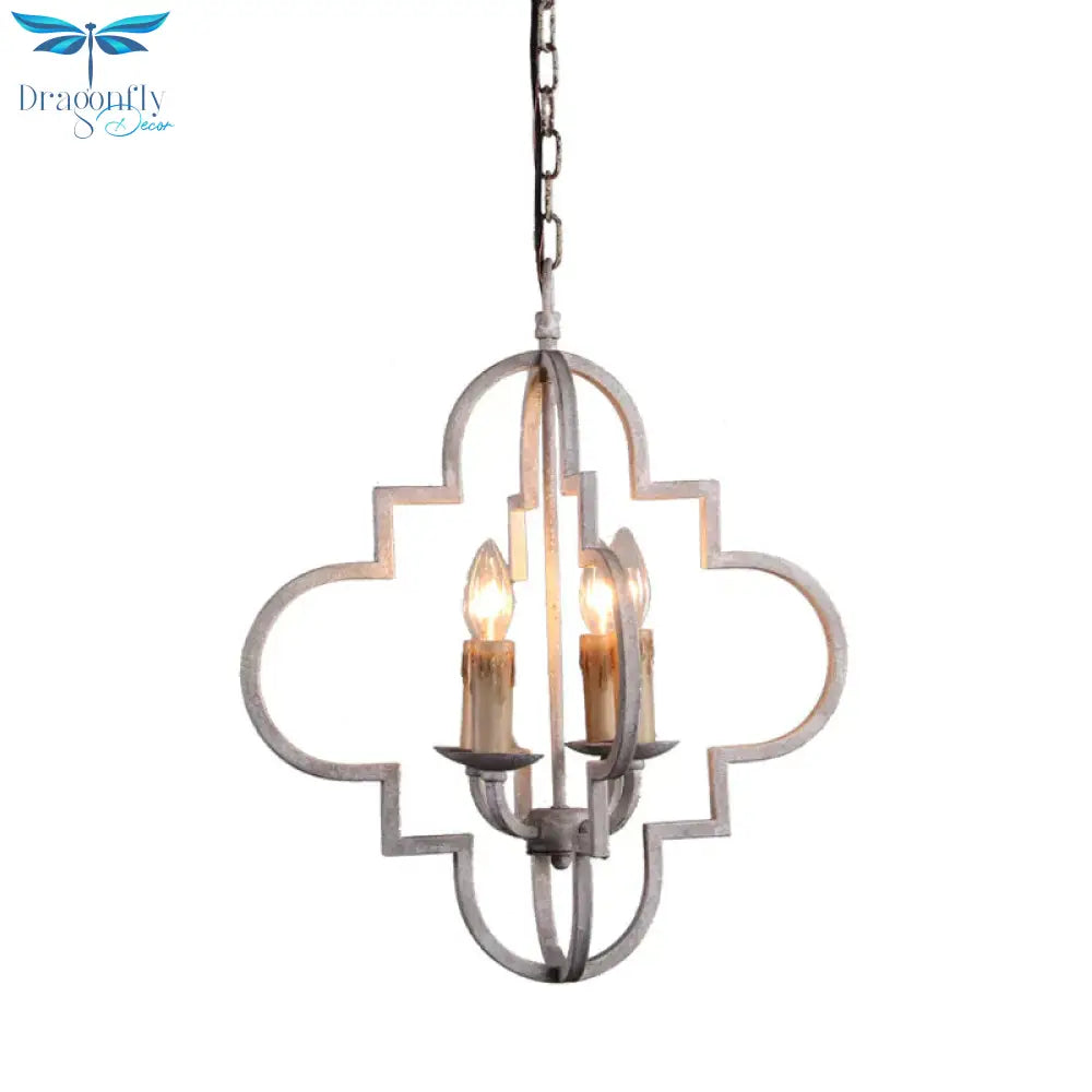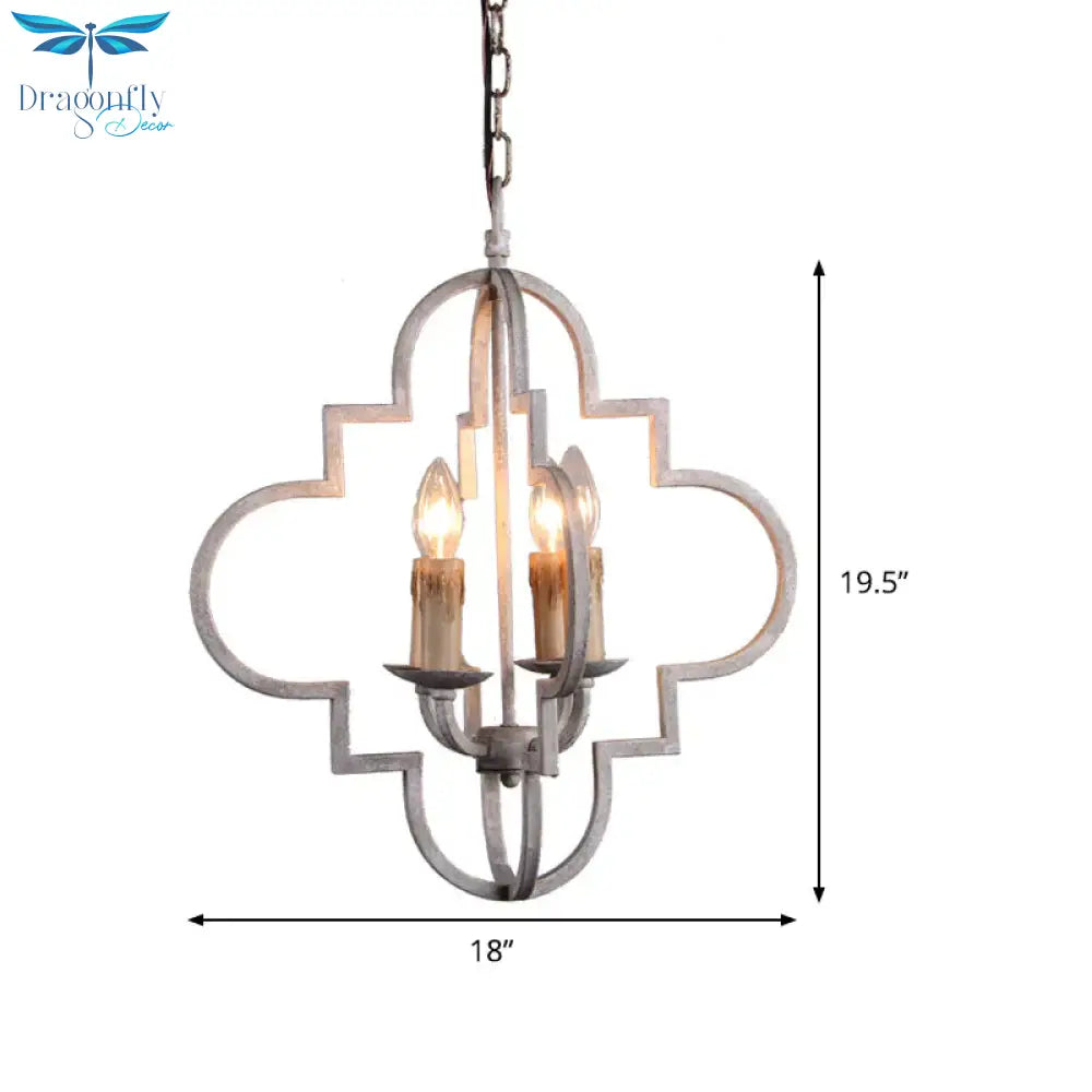 4 Bulbs Candle Ceiling Chandelier Rustic Wood Suspended Lighting Fixture in Distressed White