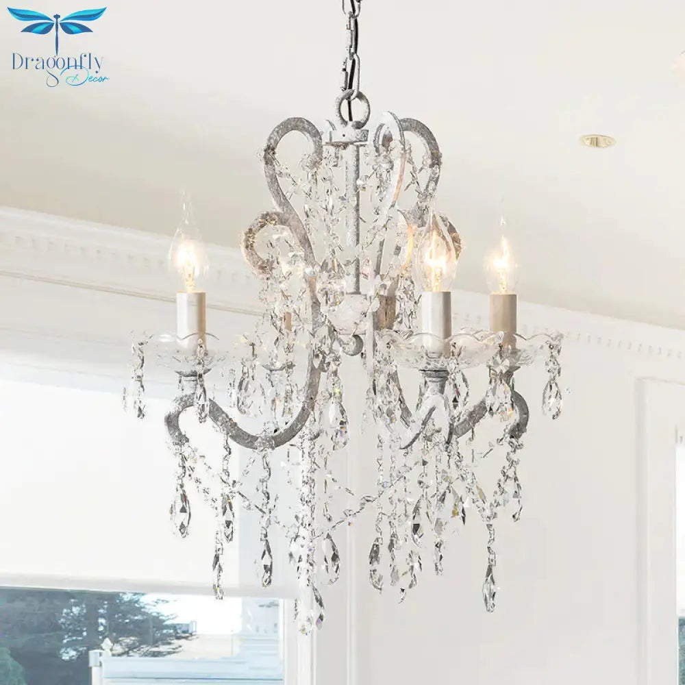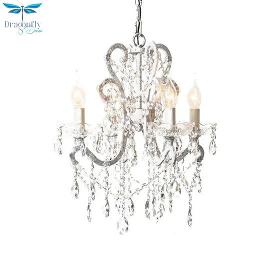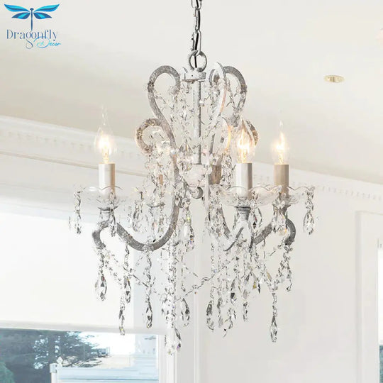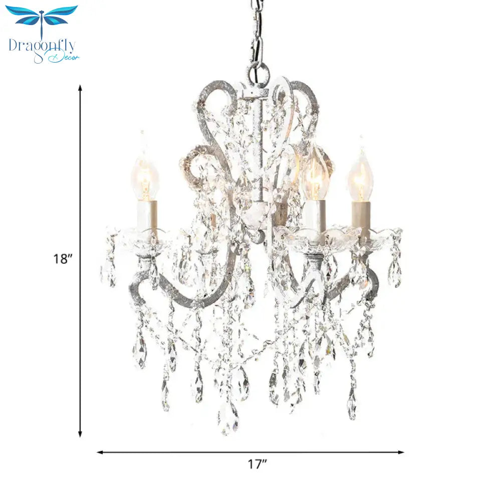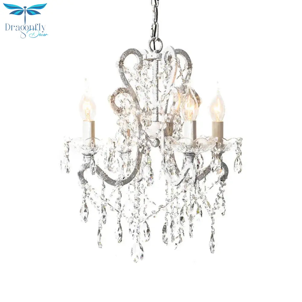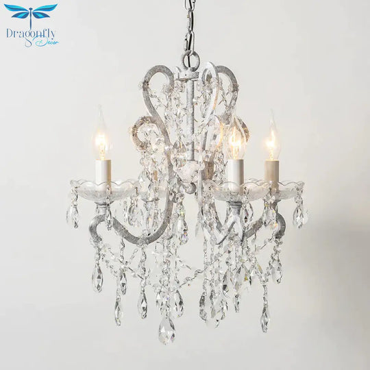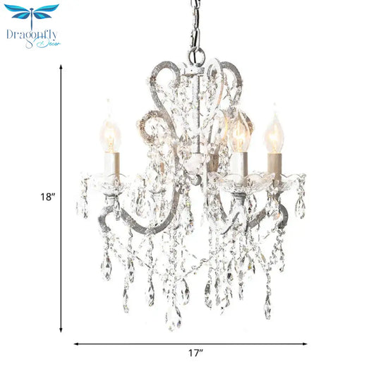 4 Heads Chandelier French Country Living Room Ceiling Suspension Lamp with Candelabrum Crystal Design